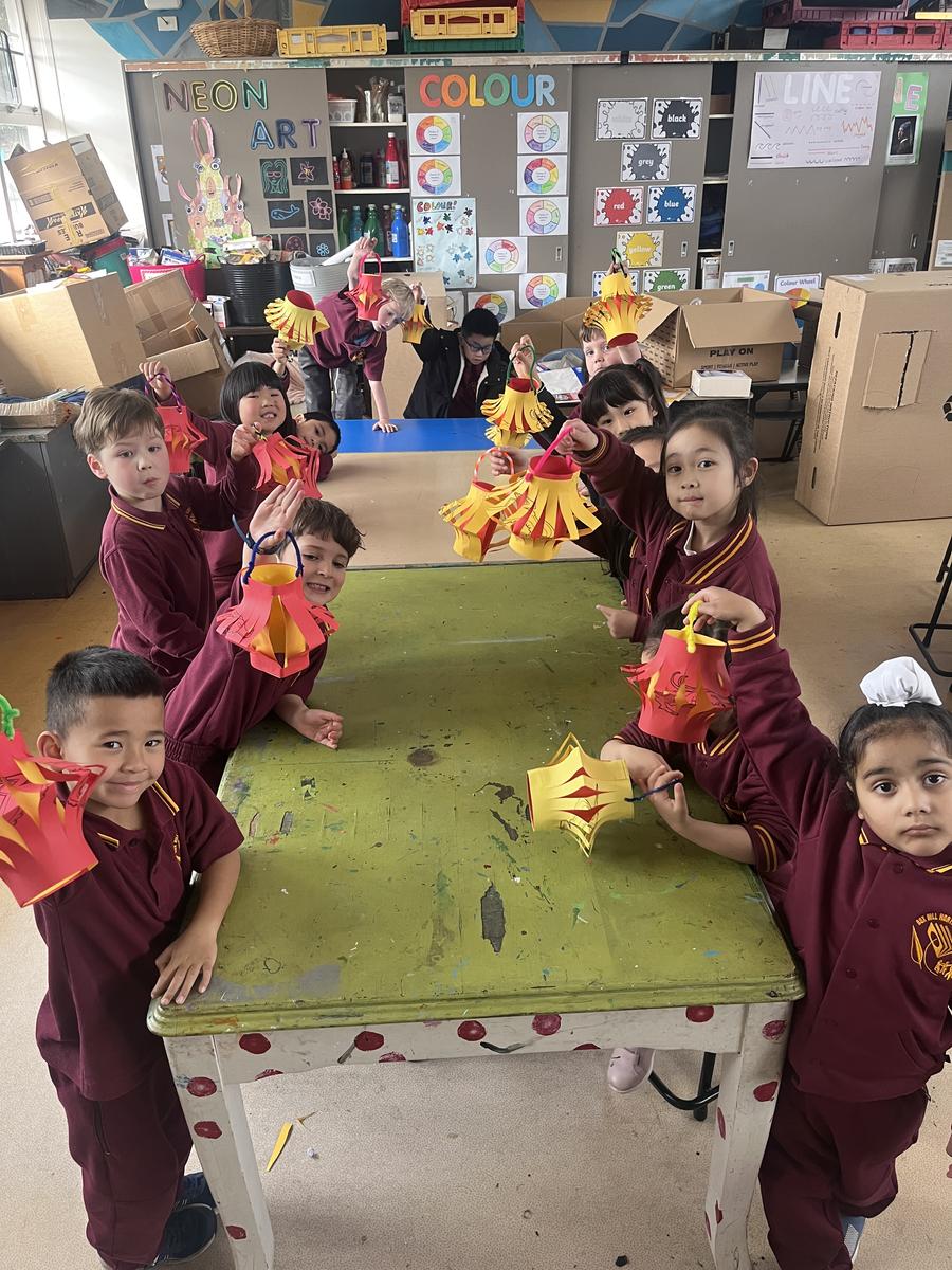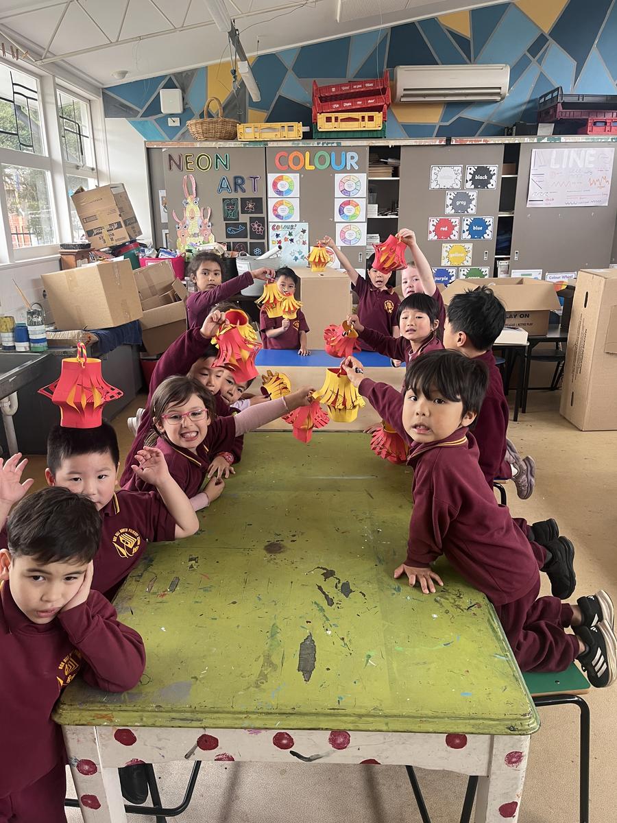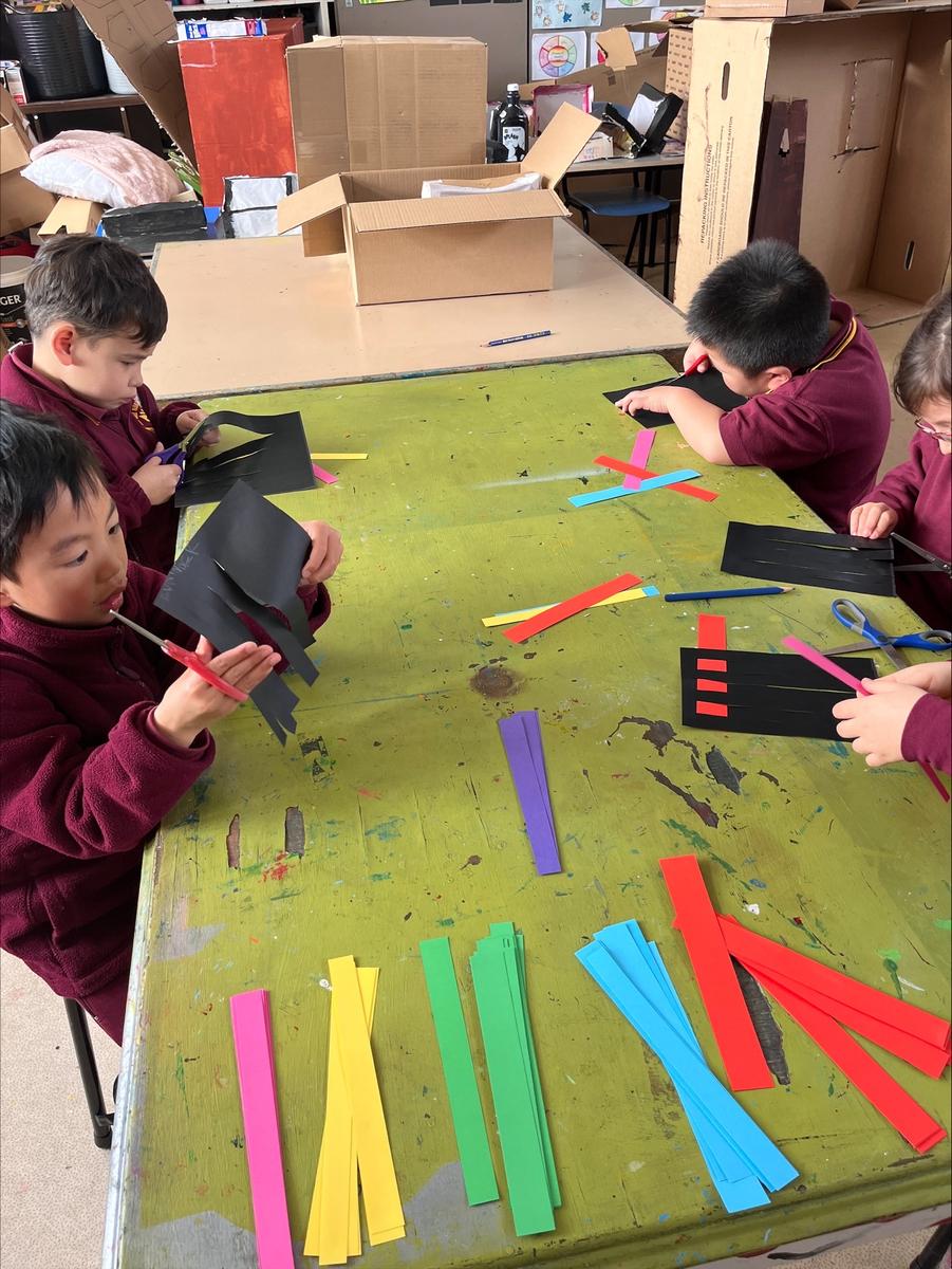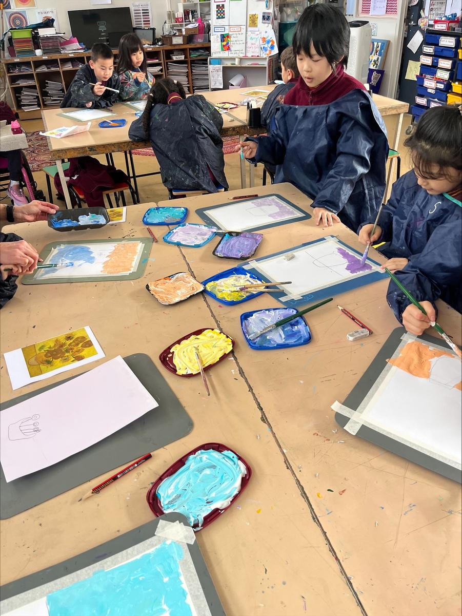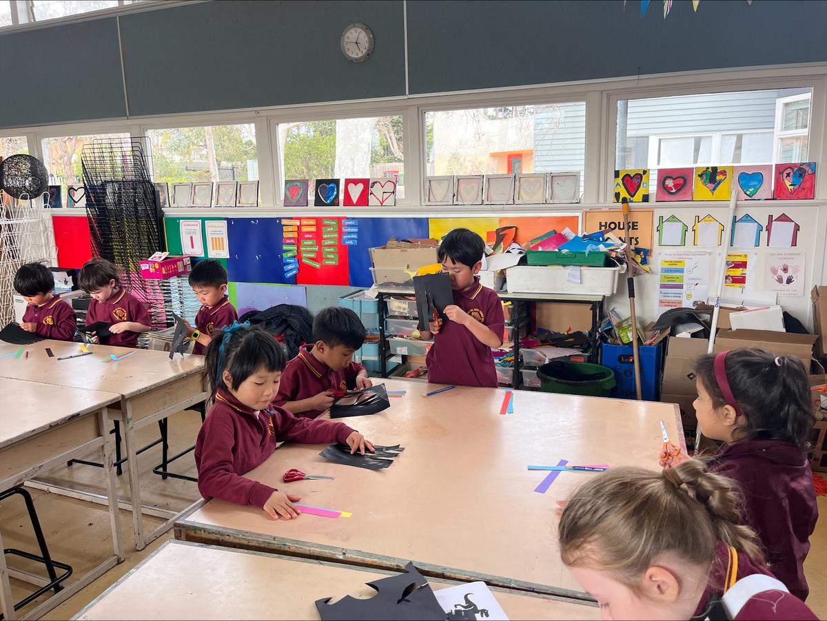 Year 1 and 2 students brought their classroom inquiry on light and dark to life by designing shadow puppet theatres and characters, bringing their stories onto the stage through silhouettes. Recently, they explored Vincent van Gogh’s Sunflowers, experimenting with brushstrokes, colour, and composition to create vibrant mixed-media collages.