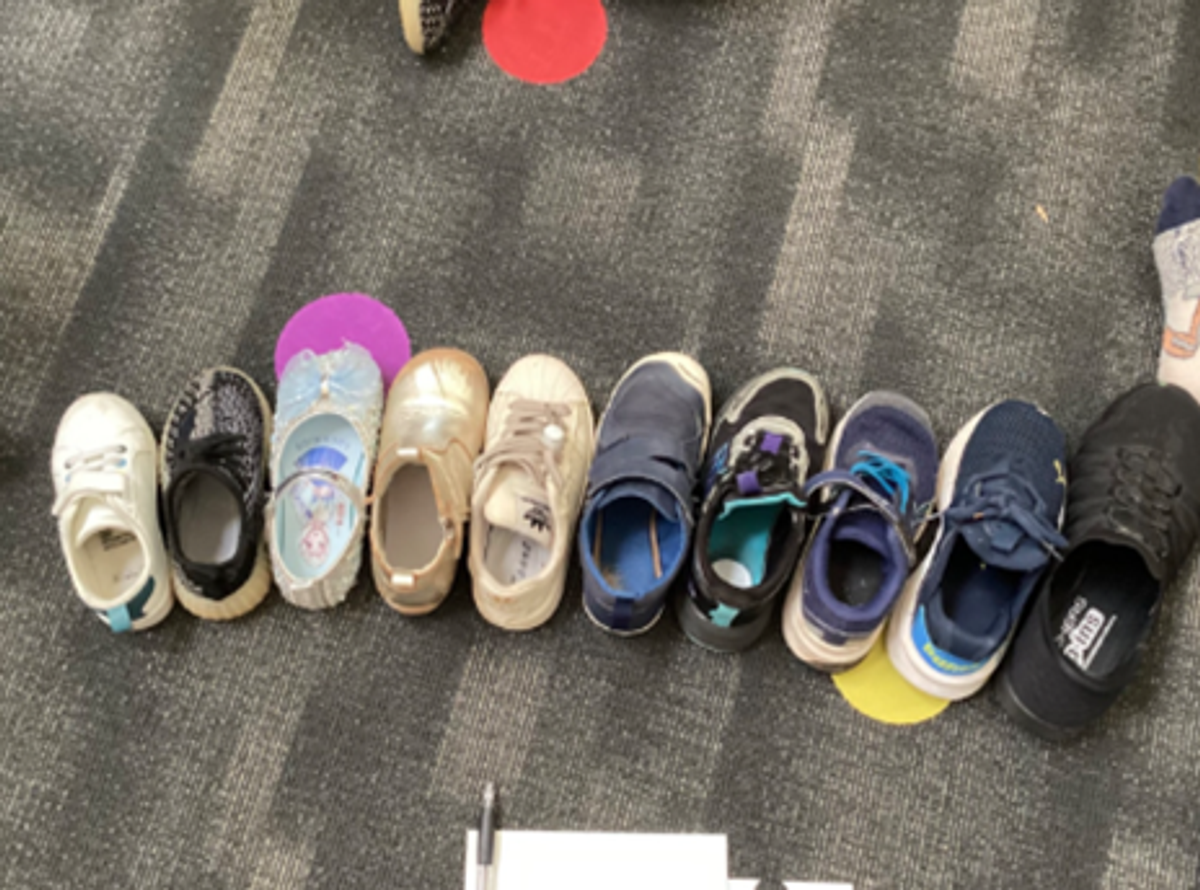 At kindergarten, child-led inquiry can lead to very fulfilling moments for both teachers and students. For instance, this week the children acted on their interest in the ‘shoe shop’ game by setting up a shoe shop. Realising that we do not have enough shoes, one child said, “We can make it, like craft!” Together we traced and decorated shoeprints, triggering laughter at my “very big shoe.” Exploring real shoes, the children noticed differences in shape, size, and heels. Everyone agreed that heels make someone taller because it is sloping and higher at the end. Discussions led to new understandings: two shoes make a pair, shoes need to face the right way to fit, and shoes can be sorted by size—though “bigger” was easier to grasp than “longer.” This inquiry into shoes opened rich opportunities to explore mathematical ideas in playful, meaningful ways.