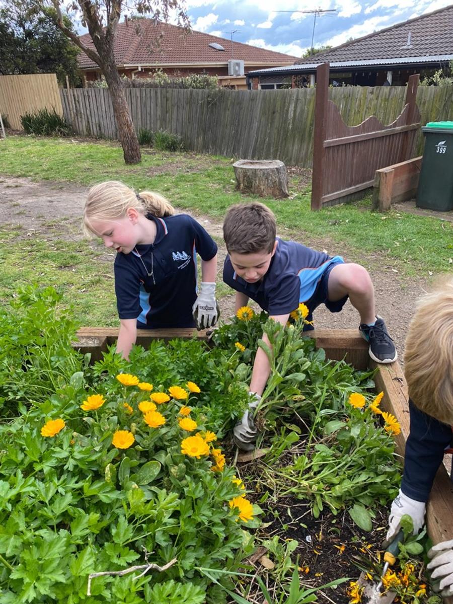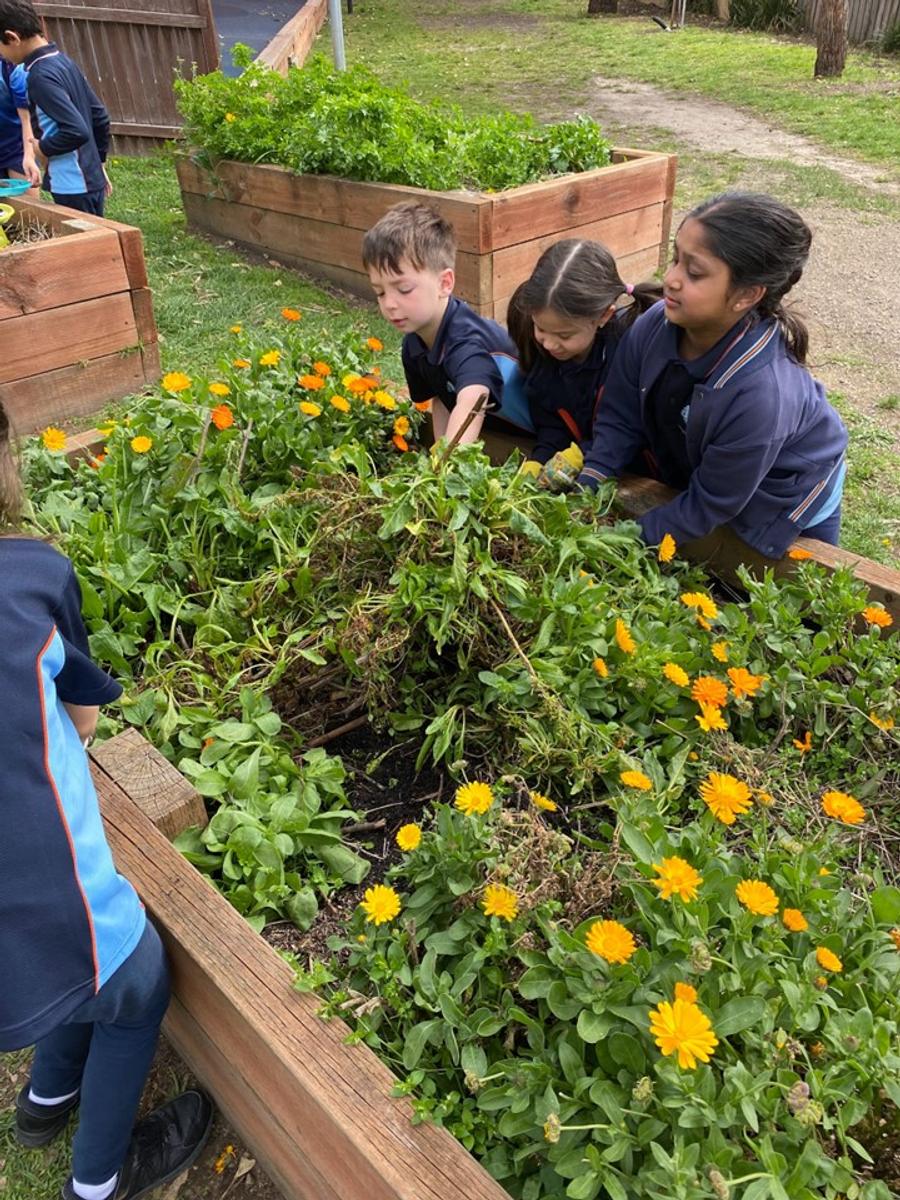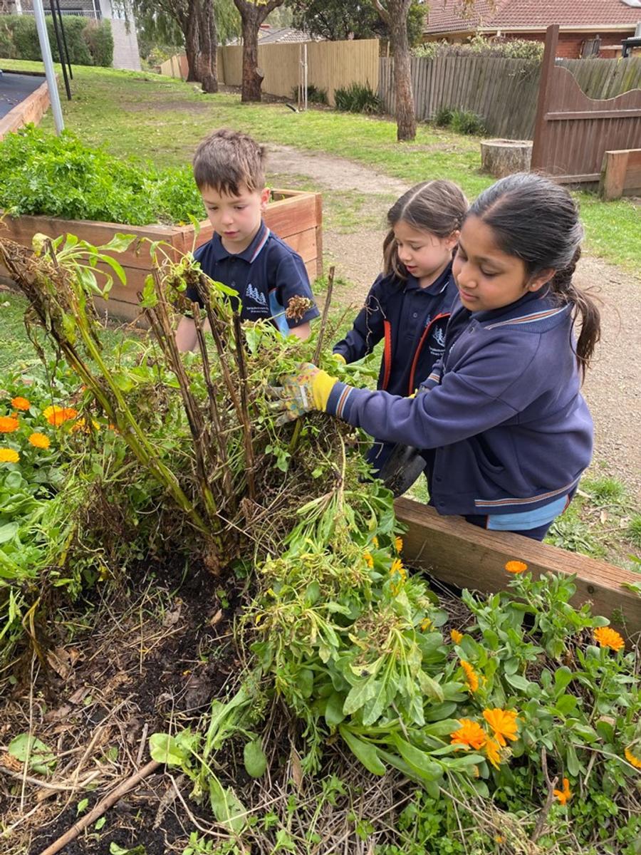 These extra strong Grade 1 students pulled out a very big old vegetable plant!