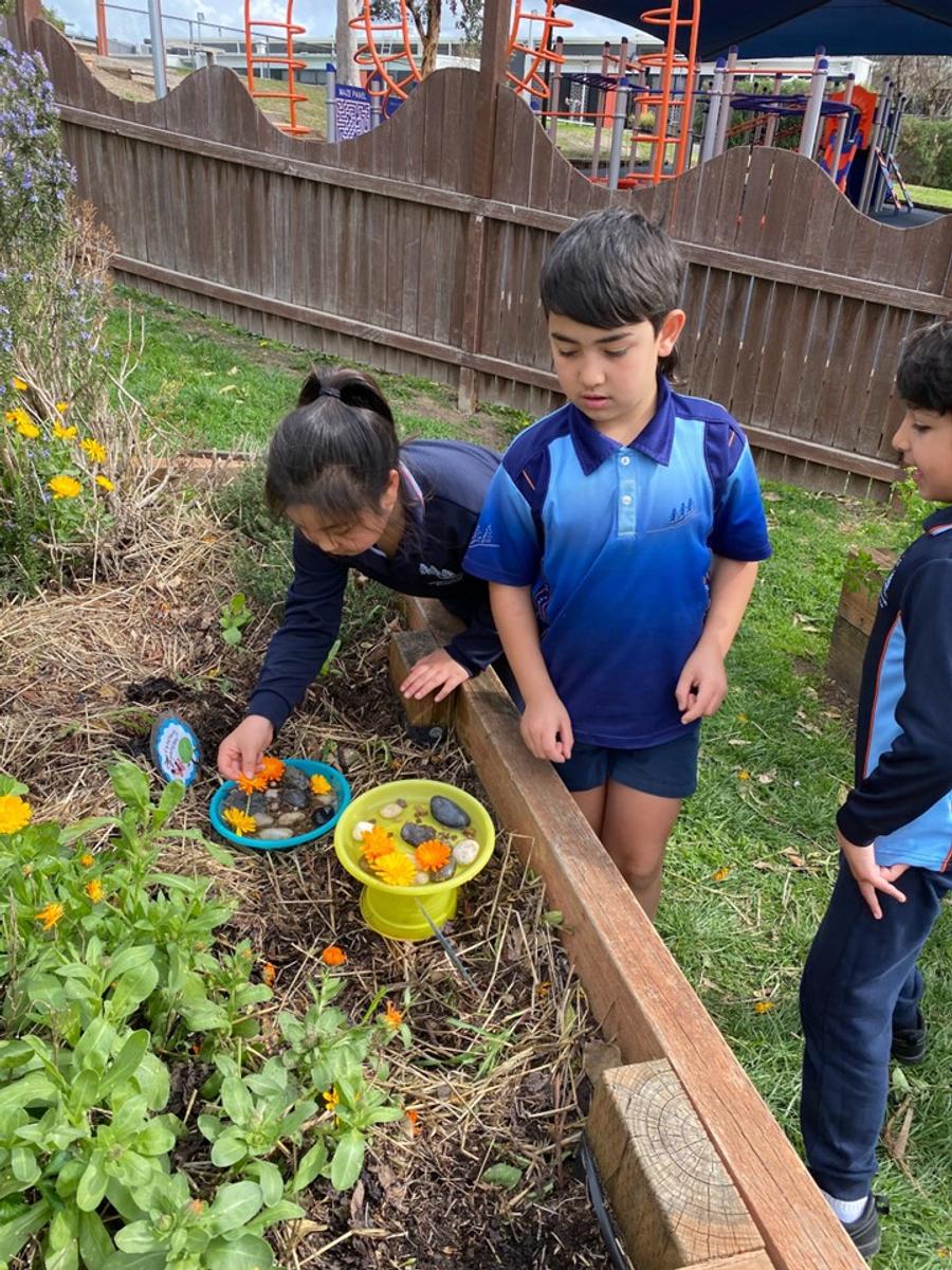Grade 3 learned how to build a bird bath, and how to maintain them. We found out that birds can spread nasty diseases to each other, especially on bird feeders that are not regularly cleaned. Some of these diseases are very painful and can’t be treated. We are adding cleaning the bird baths to our list of weekly jobs in the garden to make sure our birds don’t get sick.