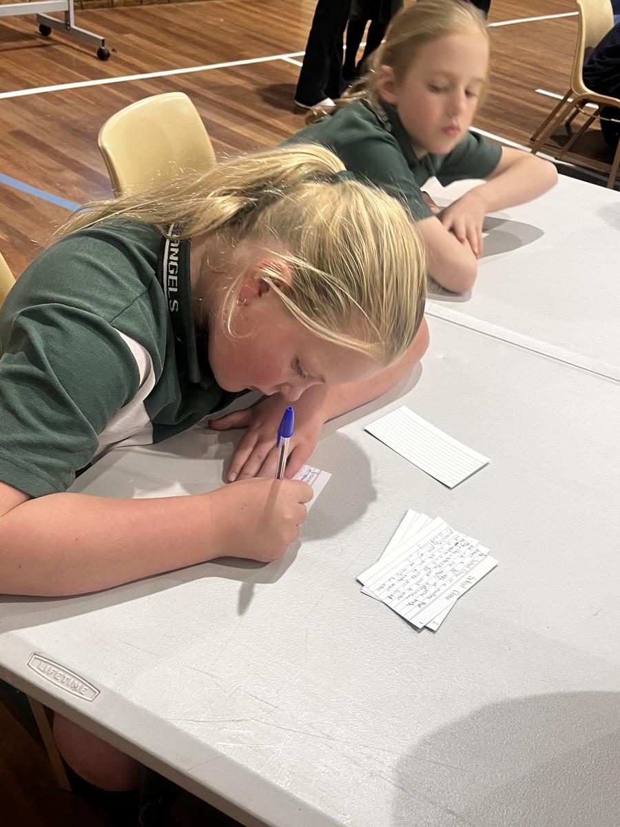 On Monday the 11th of August, some excited St Mary of the Angels students from Years 4–6 travelled to Holy Trinity School, Inverell, to take part in Brain Olympia. When we arrived, the teachers introduced themselves, the schools, and the teams. They also set us a fun challenge for the day — to make a new friend before we went home.