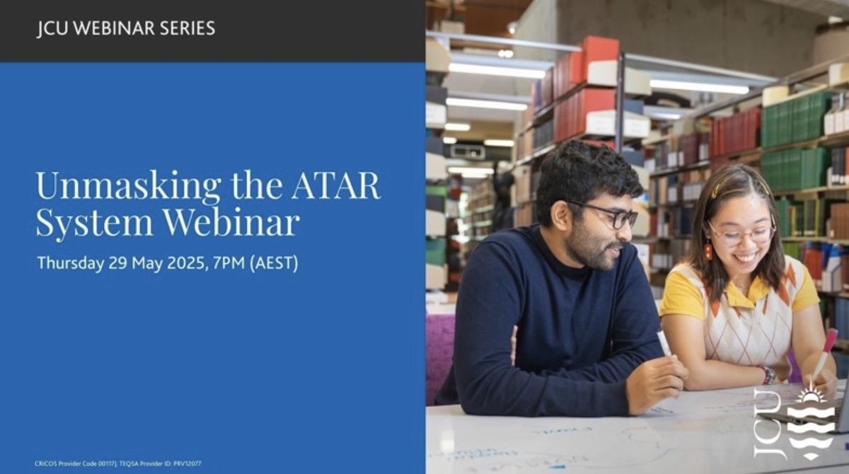 Hosted by JCU and QTAC, this one-hour interactive webinar will provide you with a greater understanding of the ATAR system, how to use this information to choose Year 11 subjects and some information on QTAC and degree selection.
