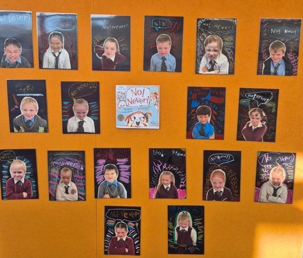 Kindergarten read the text “No! Never!” written by Libby Hathorn. Students created artworks to demonstrate their emotions as the character Georgie, in No! Never!