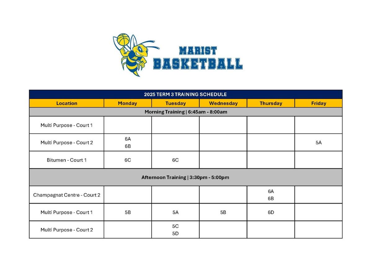 Venue: Marist Outdoor CourtsTime: 3:30 - 4:30pmUniform: Marist Primary Sport Uniform