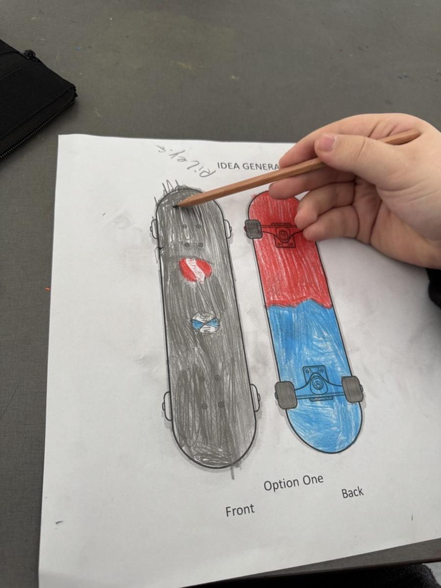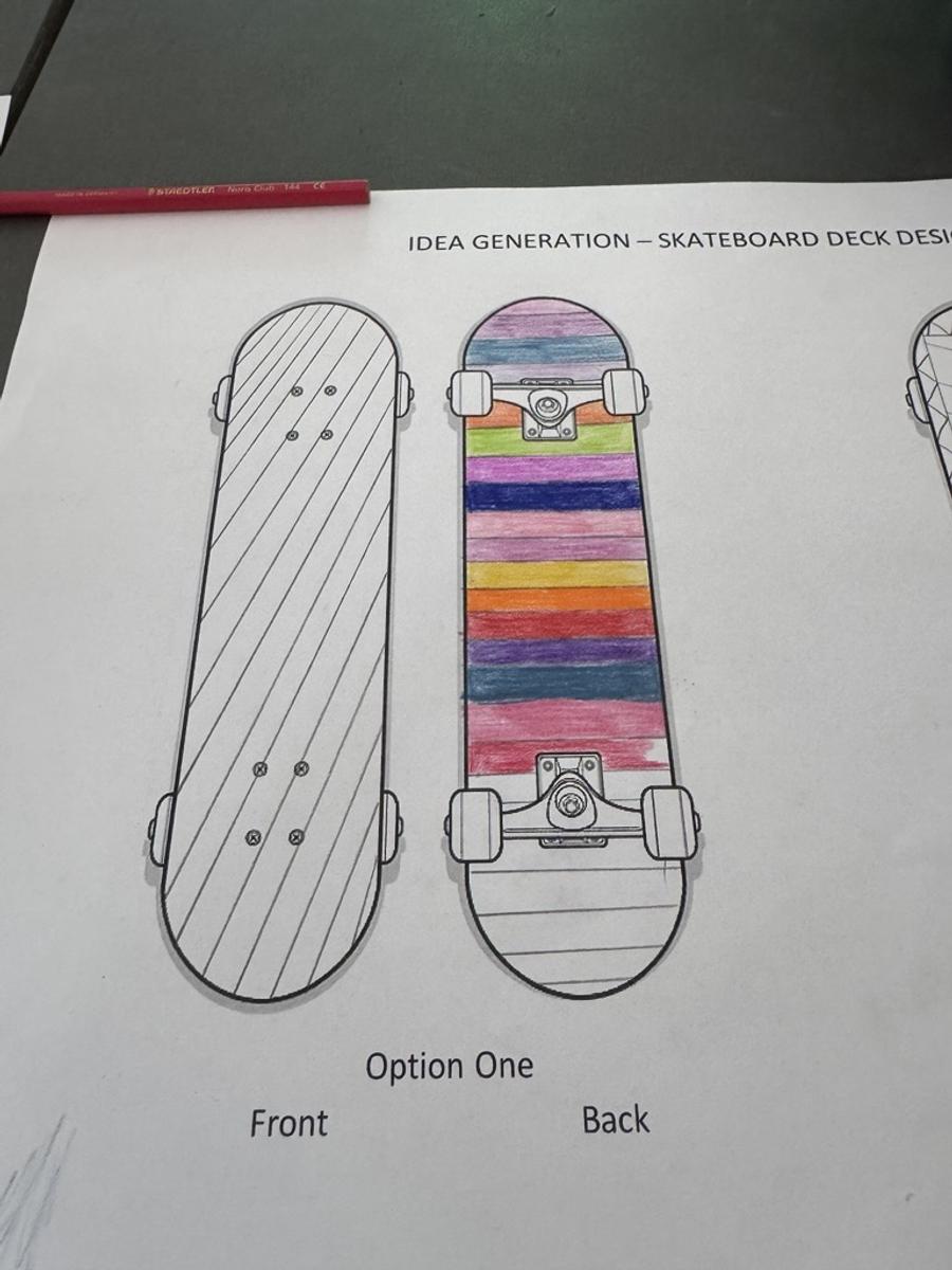 Our Year 8 classes have thoroughly enjoyed working on their skateboard designs this week. After brainstorming and sketching their initial concepts, they’ve been refining their designs, carefully perfecting every detail before transferring them onto the actual skateboards. This creative process has allowed them to bring their artistic visions to life in a fun and dynamic way. We can’t wait to see the finished boards in action!