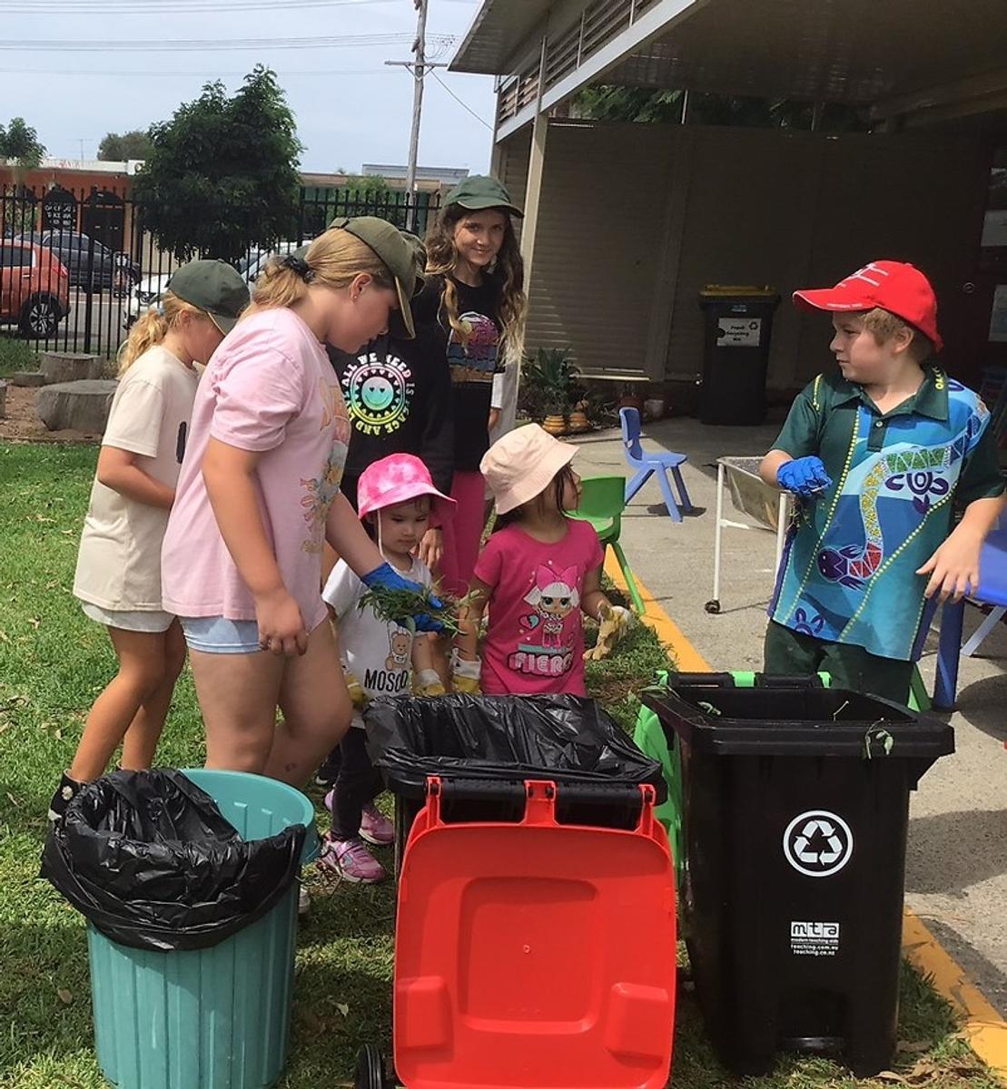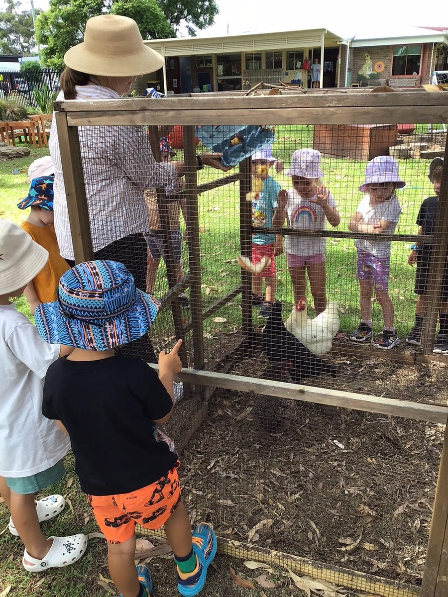 At preschool we link our sustainable practices to our promise in our Acknowledgment of Country. The children in both groups are starting to learn our preschool version by reciting it each day. During our play times, routines and intentional teaching we discuss ways that we can look after the land. Recently we have been discussing how keeping the sand in the sandpit helps to look after the land. We discuss how composting and feeding chickens our scraps helps to look after the land too. The child are also starting to know which bin is the recycling bin however the skill of sorting waste does take some time to fully develop.