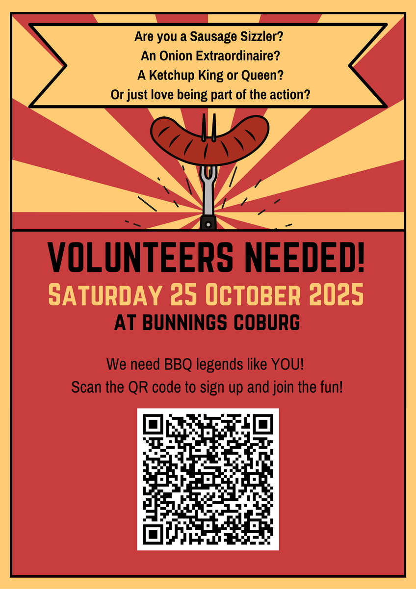We need you! This year's Bunnings Coburg BBQ is on Saturday 25 October 2025.