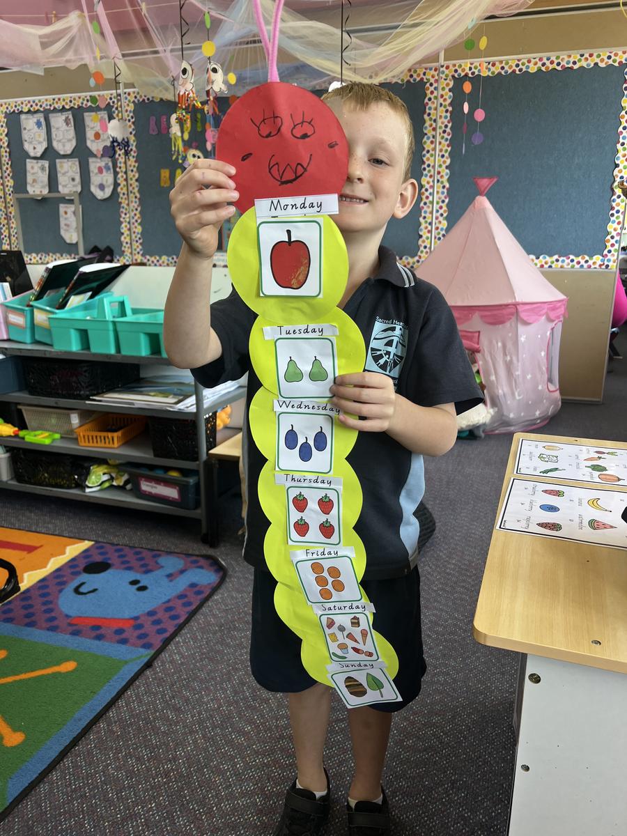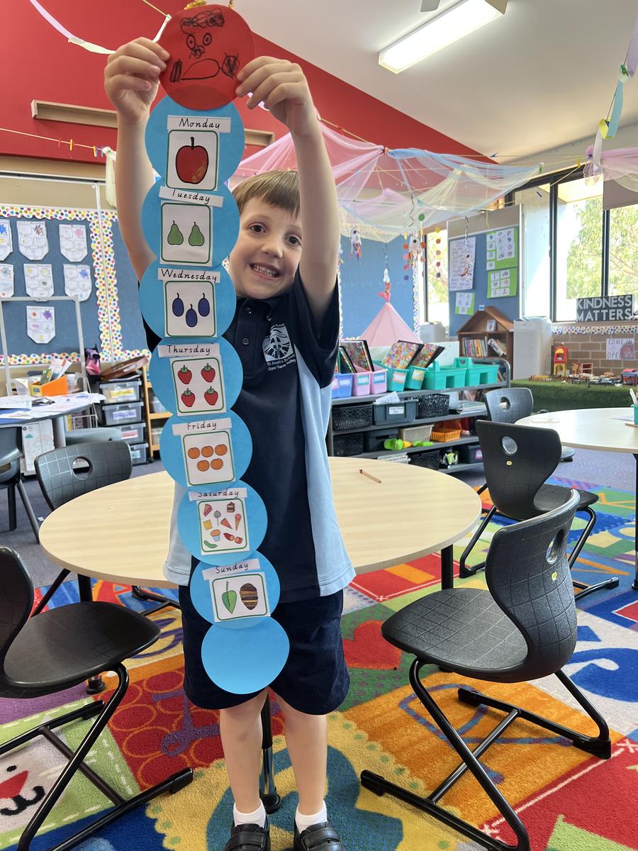 Another way we can measure time is using days. The Foundation students listened to the story of 'The Very Hungry Caterpillar' and put the days of the week in order using the foods the caterpillar ate. Here are some photos of our amazing caterpillars.