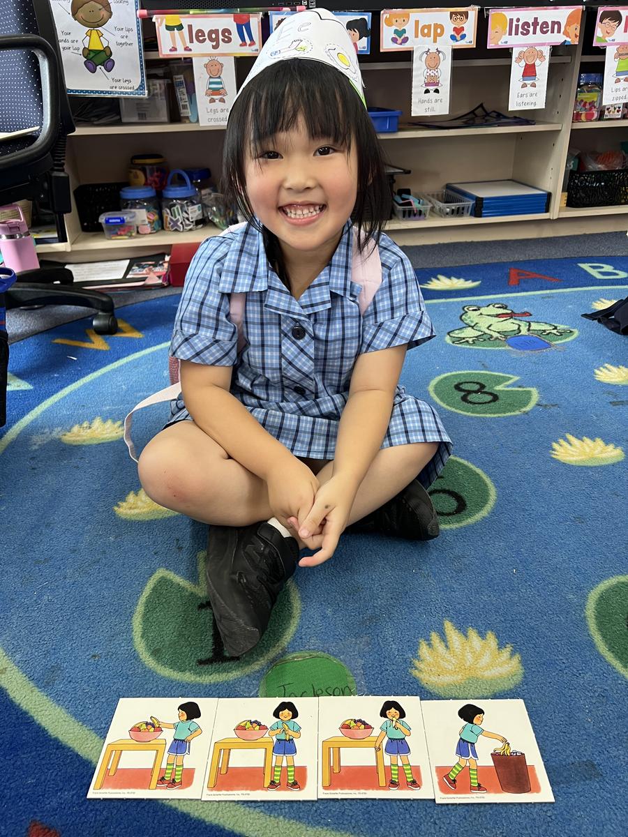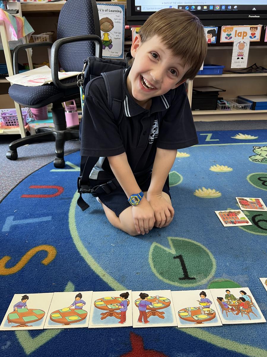 For Maths, the Foundation students have been learning about Sequencing Time. They have been practising putting steps in order. Here are some examples of the Foundations putting different things in order, such as baking a cake, making a pizza and setting the table. The Foundations had to use vocabulary such as first, next and last to explain the steps.