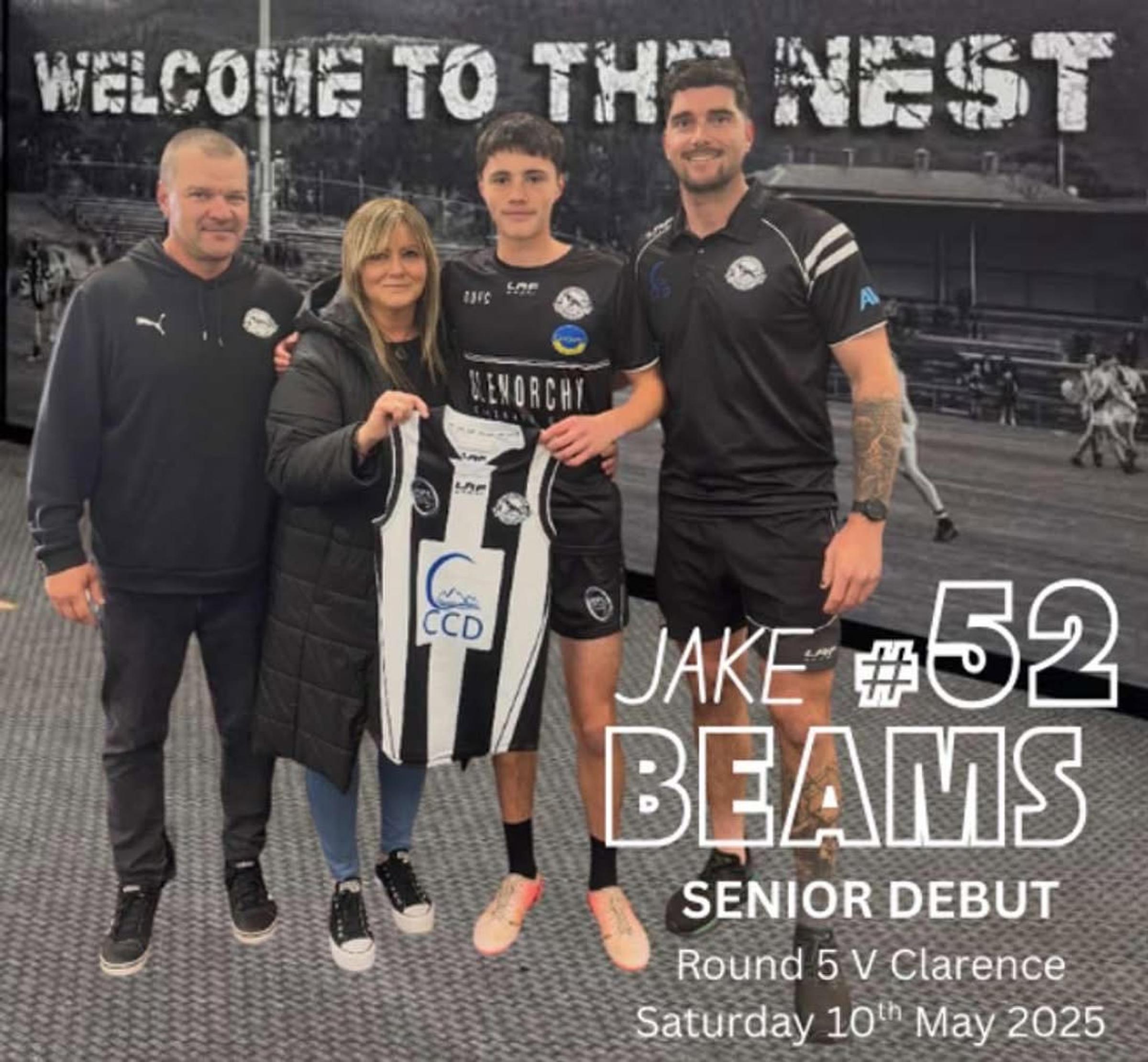 Year 9 student played his first senior game with Glenorchy in its game against Clarence on 10 May. Jake, a member of the Devil’s Academy, is the son of Ben Beams, who played AFL football with Melbourne, and is the younger brother of the Glenorchy captain, Harrison Gunther (svc 2012-15). Glenorchy is coached by another OV, Josh Arnold (svc 2009-12).