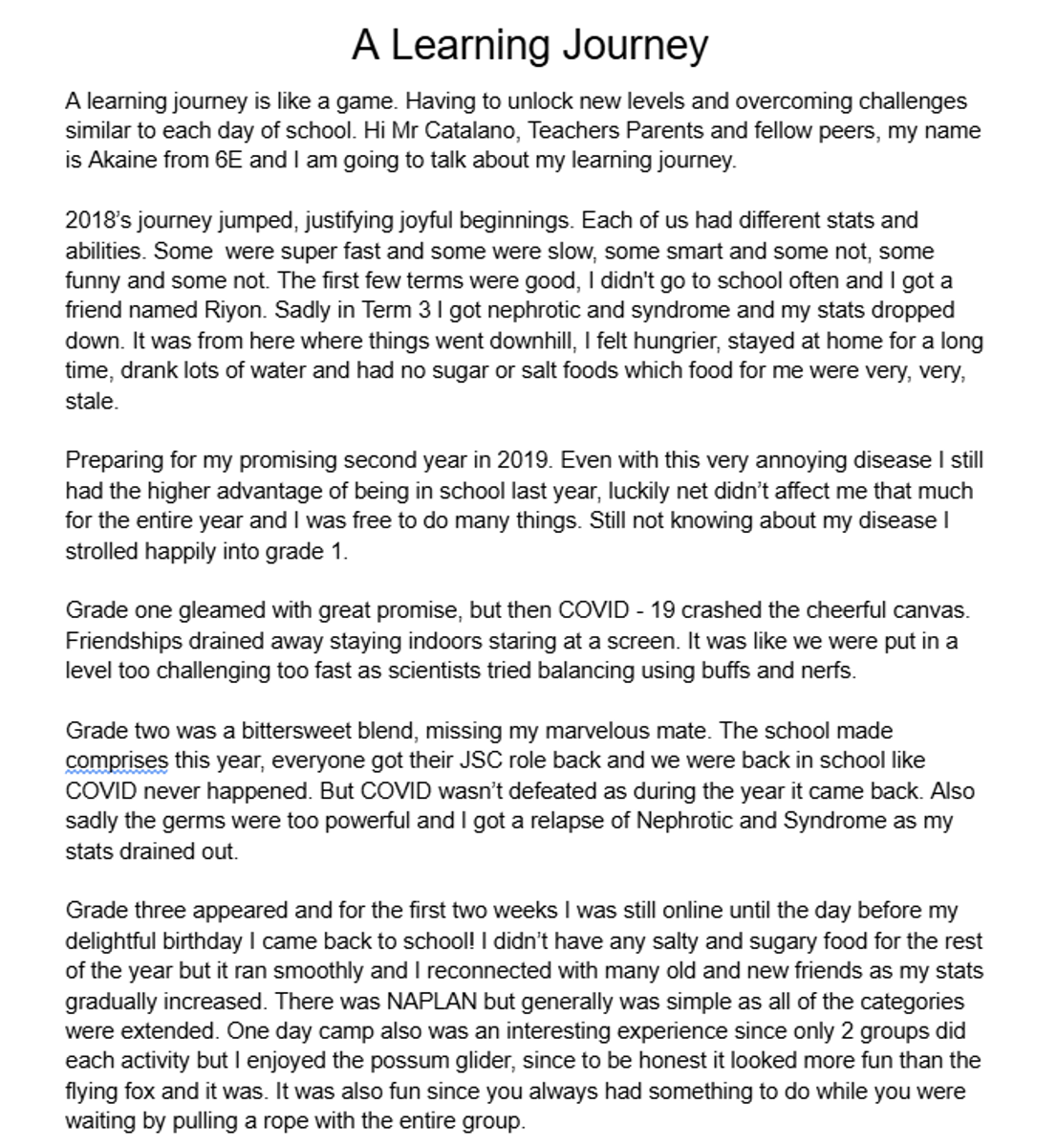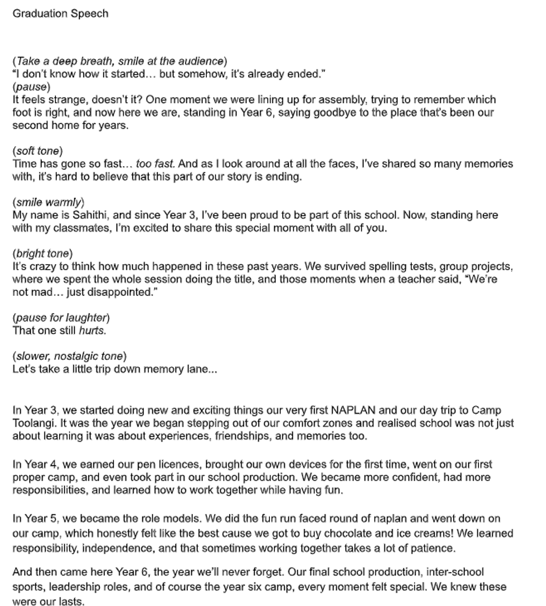 We used analogies and figurative language to successfully make our speeches engaging, while having some comedy and humour for our audience. We considered the whole class, parents, teachers and our school leaders as our audience when we created our speeches.