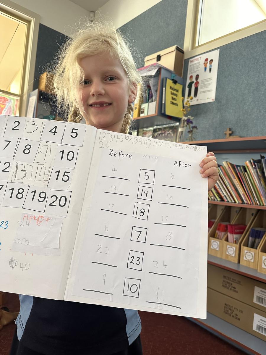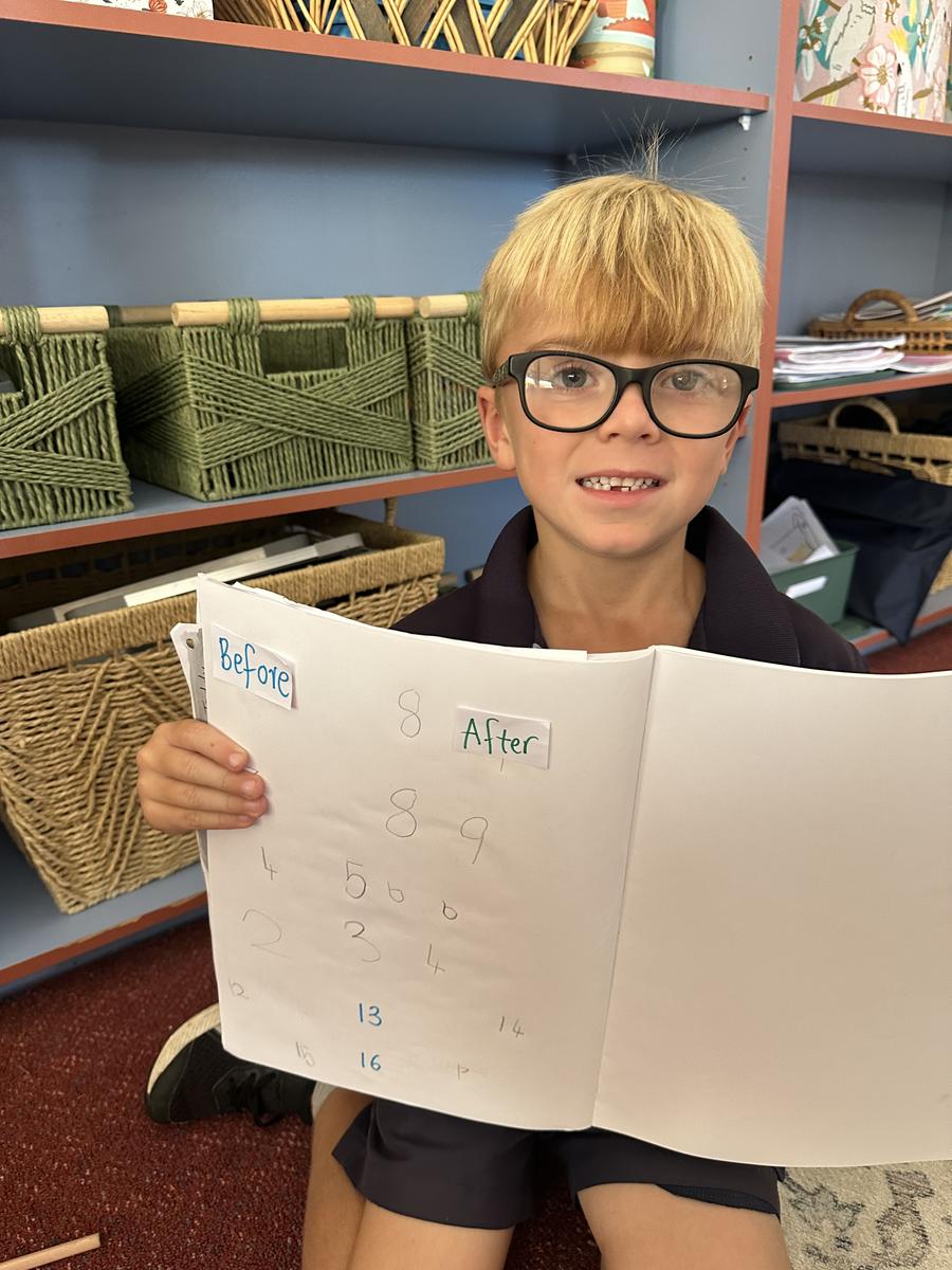In maths, our Foundation students have been so enthusiastic about counting to 100 everyday. They’ve been learning important concepts such as before and after. They’ve had a great time identifying which numbers come before and after a given number and have been introduced to number lines. They’ve even made their own number lines and filled in the blanks, understanding numbers follow a sequence.