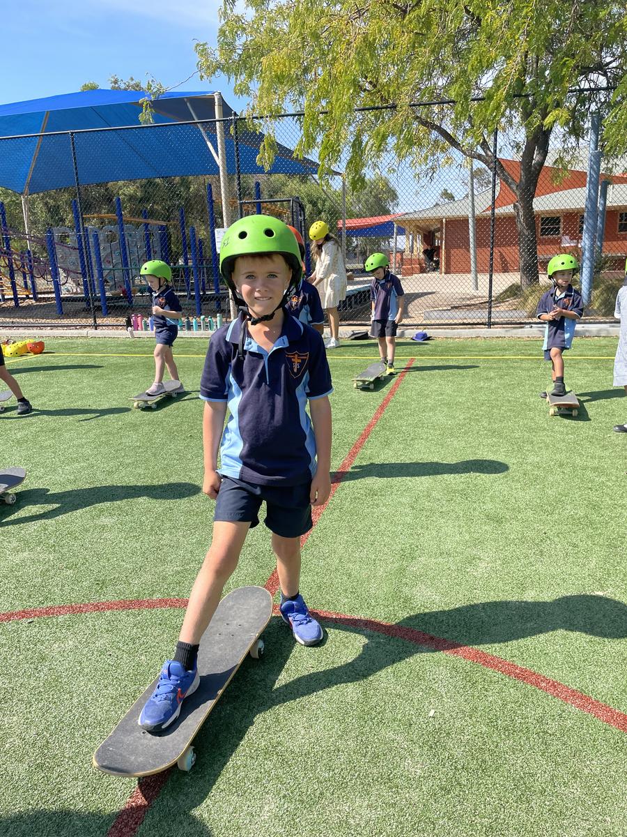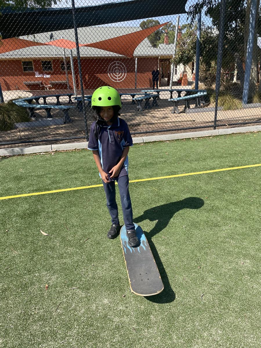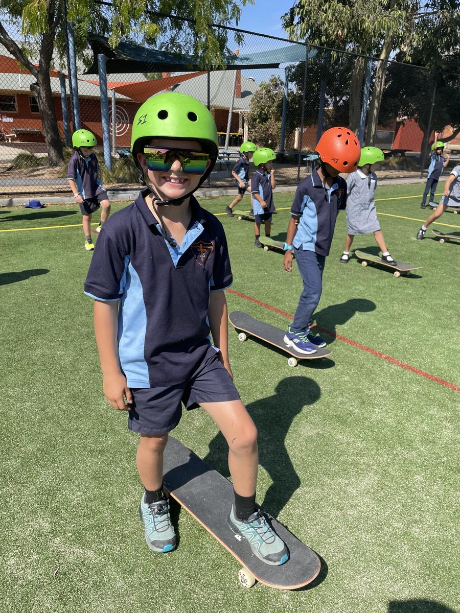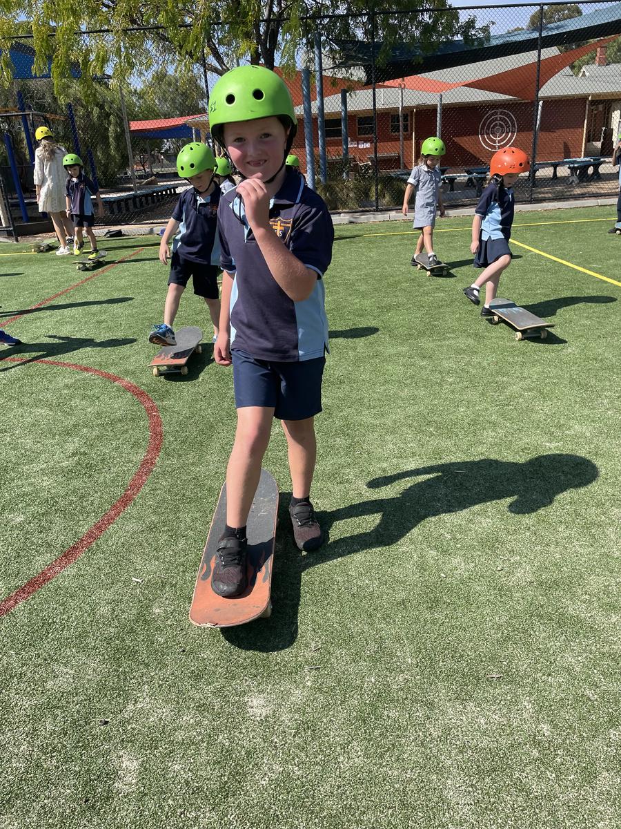 The students learnt how to safely hold their boards, stand on them, kick off in order to glide and jump off with both feet. They thoroughly enjoyed their session and learnt so many new skills.