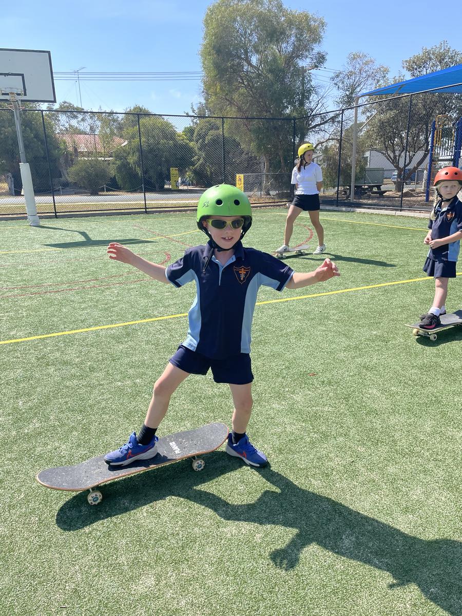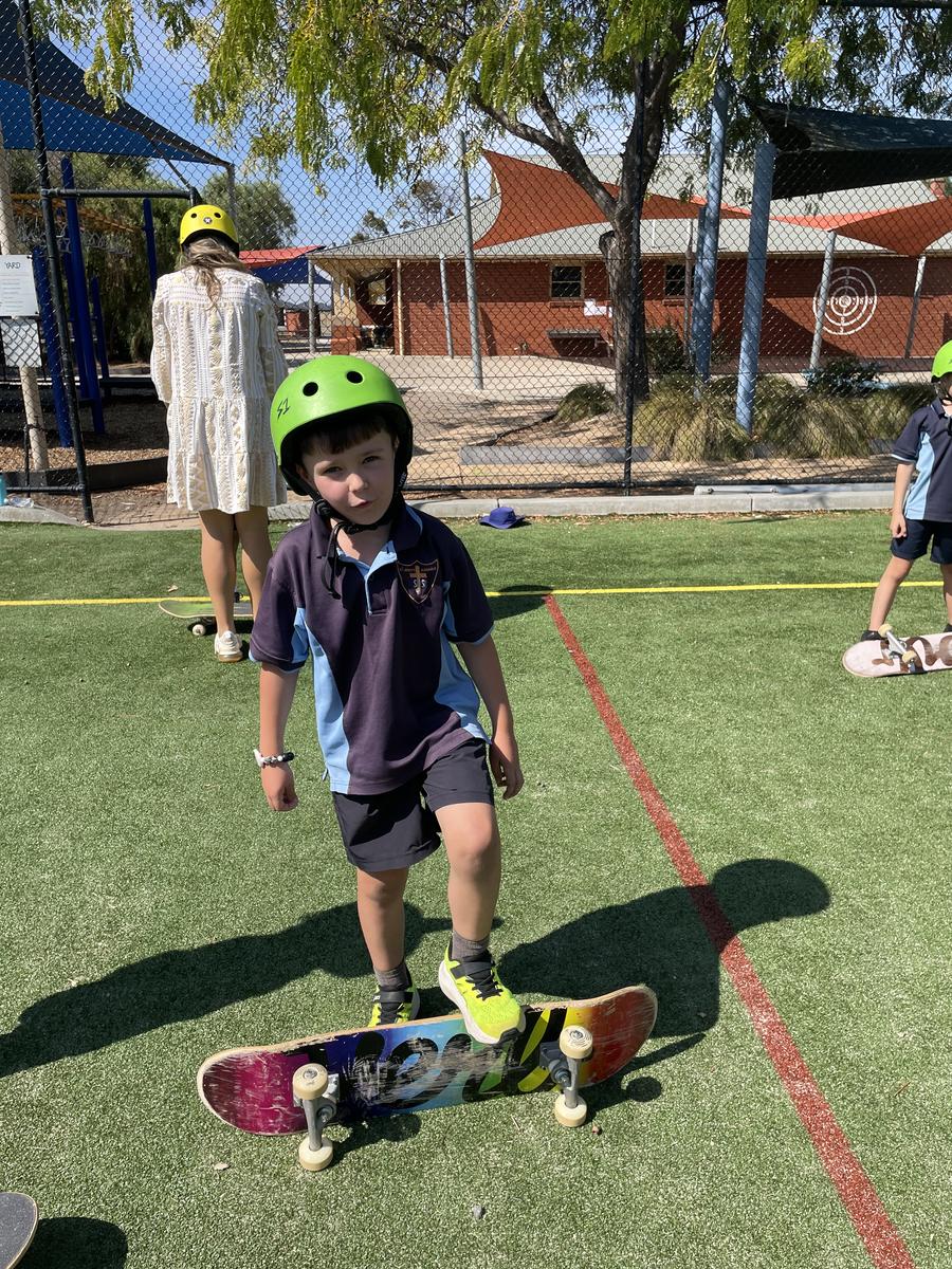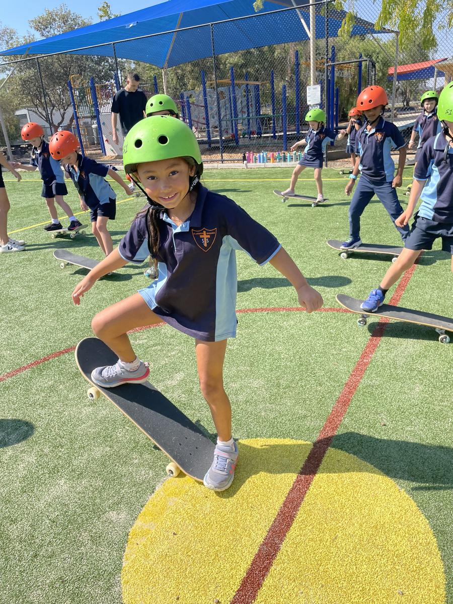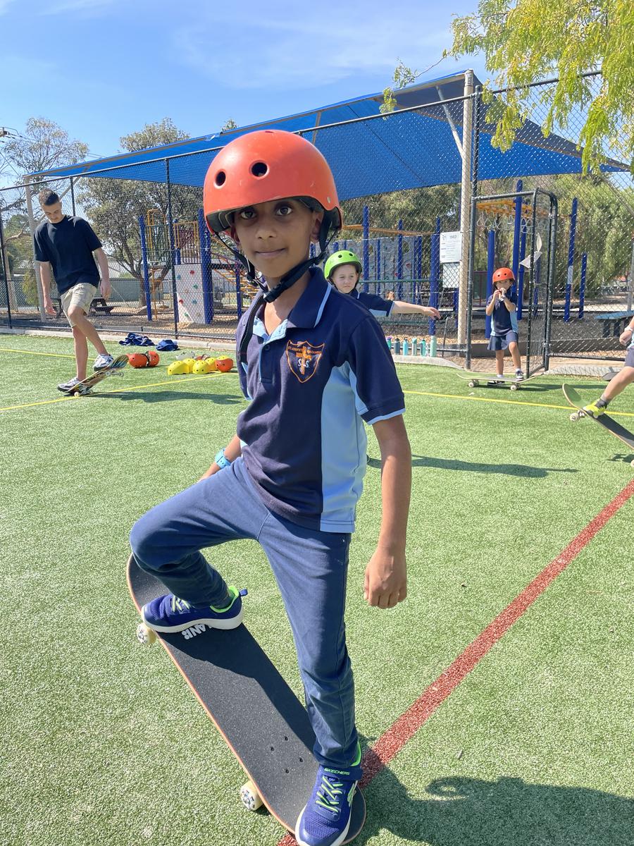 The students learnt how to safely hold their boards, stand on them, kick off in order to glide and jump off with both feet. They thoroughly enjoyed their session and learnt so many new skills.