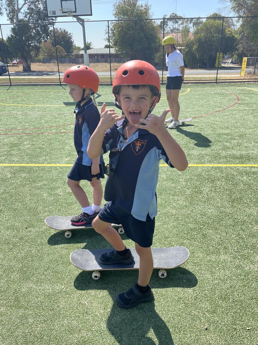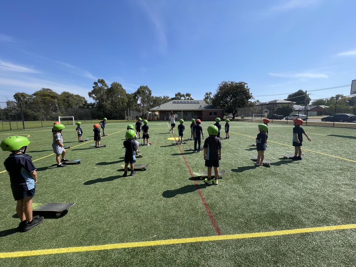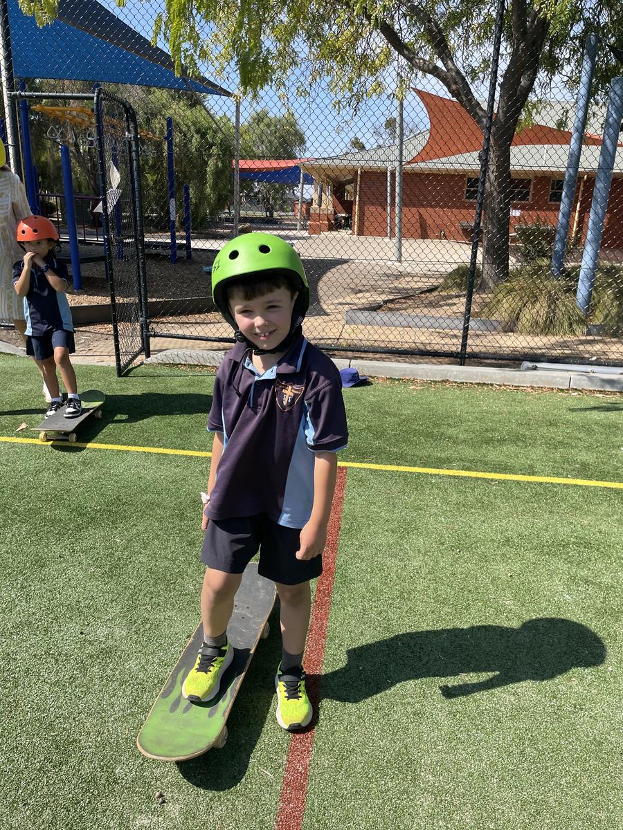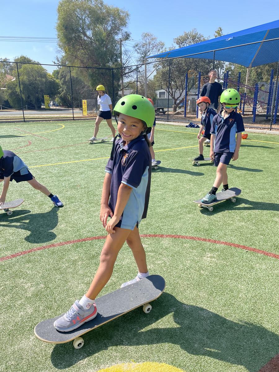 The students learnt how to safely hold their boards, stand on them, kick off in order to glide and jump off with both feet. They thoroughly enjoyed their session and learnt so many new skills.
