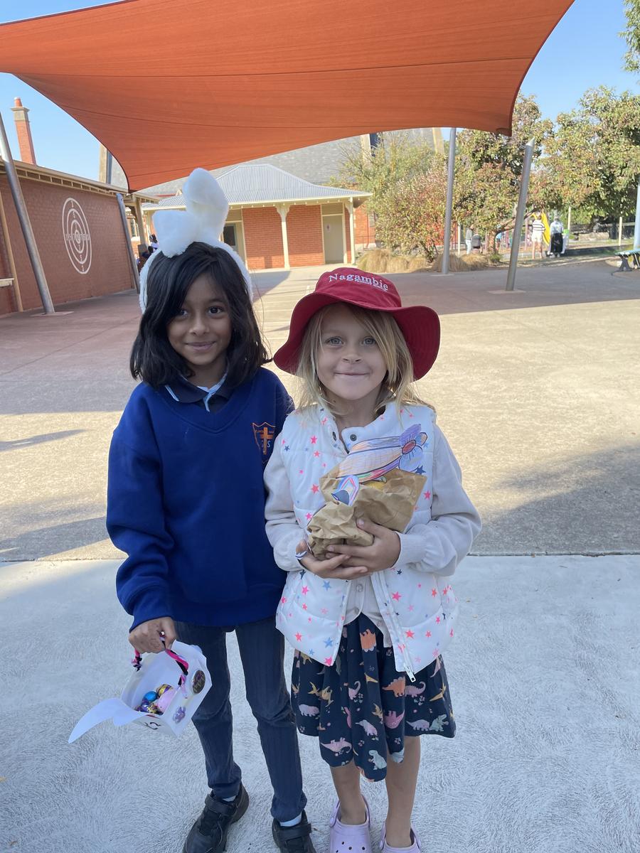 The 1/2's loved watching the kinder children collect their eggs and help them where possible. They also showed a great deal of maturity and generosity while collecting their own eggs, with many sharing if they had more than others, as well as helping their friends and our Nagambie Primary visitors to find eggs.