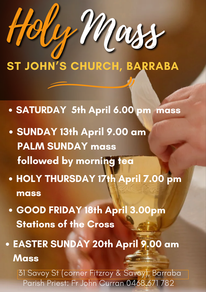 Our first school mass for Term 2 will be Friday, 9 May at 10.15am (the end of Week 2). This will be our annual Mother's Day celebration which will include a special morning tea for all our mums, grandmums, Aunties and special women in our lives. All are most welcome to join us for this very special event which will see the mass organised and led by our Year 3 & 4 class along with Morning tea run by our student leadership team.