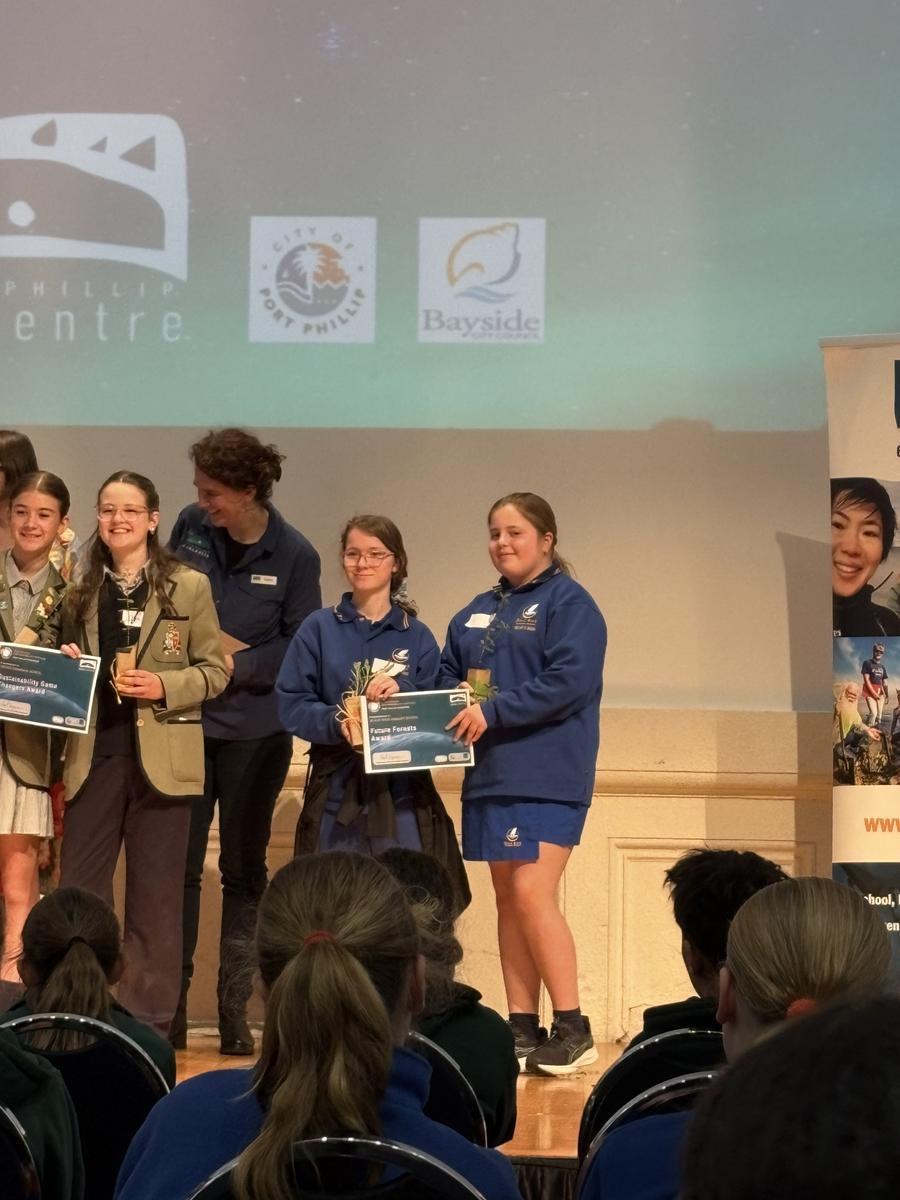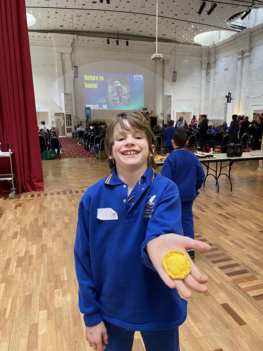 Afterwards, we proudly accepted the Future Forests Award on behalf of our school. Then we walked to the Botanical Gardens, where we petted snakes and lizards, collected unique bugs in containers, and even made recyclable chocolate! We also met Raptor, the blue-tongue lizard, and wrote our messages on the Earth Board.