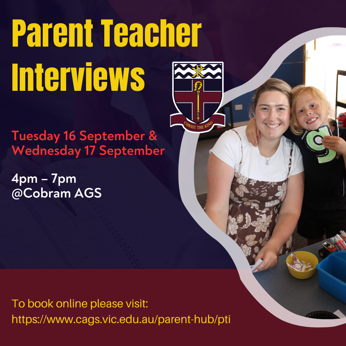 PTI online booking link: www.cags.vic.edu.au/parent-hub/pti