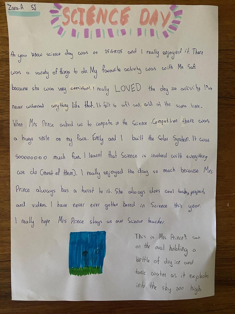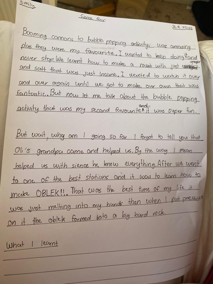 Students in 5J wrote some reviews of the day - attached are reviews from Boris and Emily.