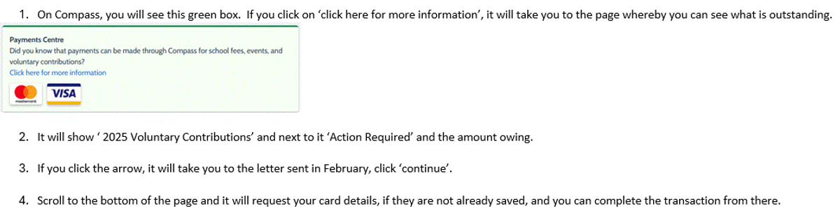 If you are yet to do so, payments can be made via Compass or at the Office by instalment or in full. Payment plans are available upon request - just contact Jacquie Clancy, Business Manager, on 5221 2738.