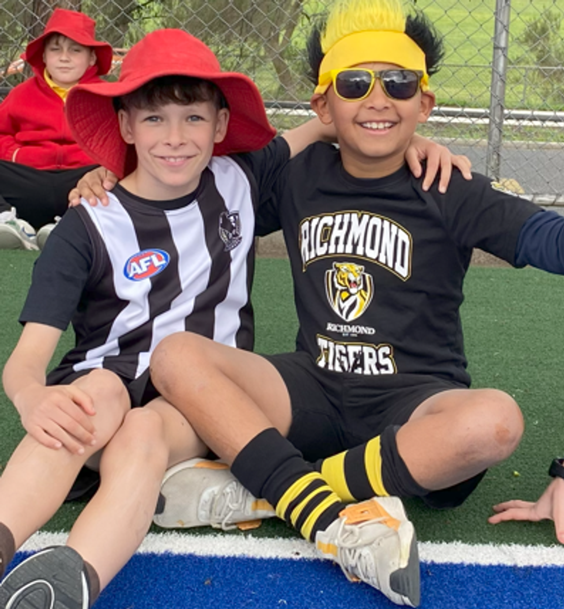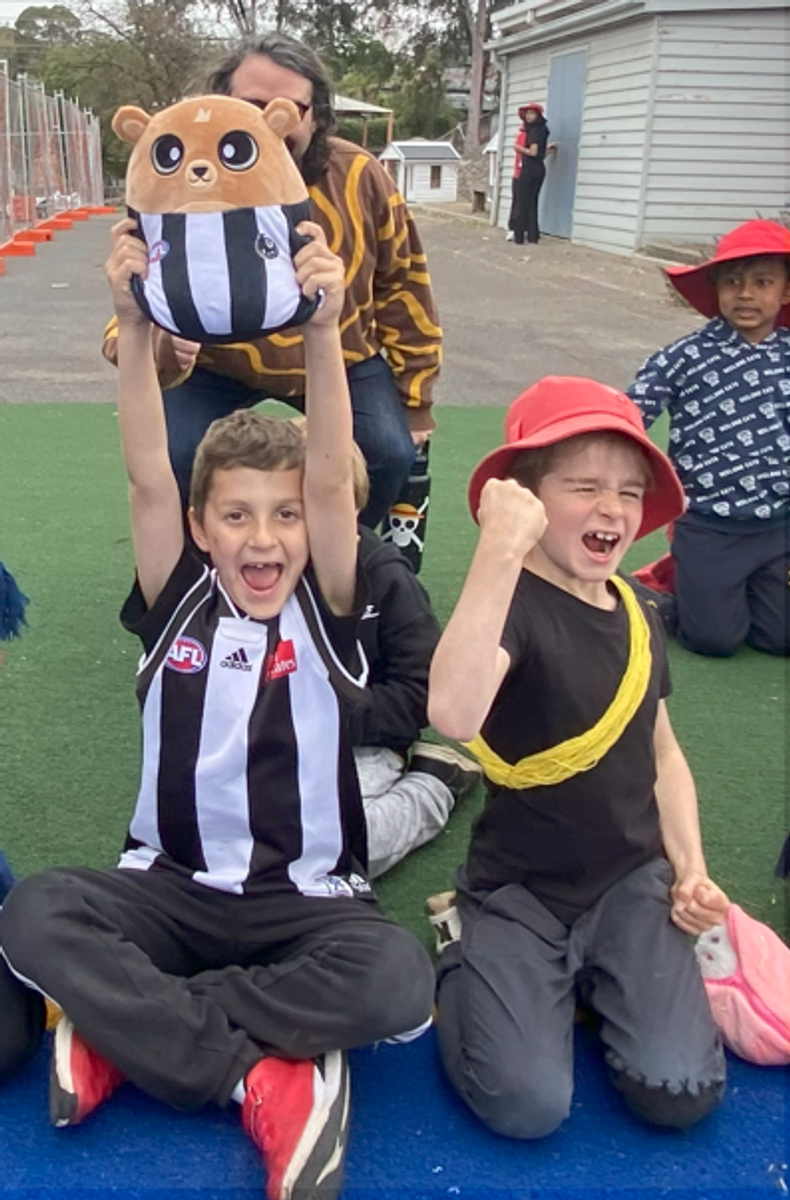 The atmosphere was buzzing—the smell of sausages filled the hall and drifted across the school. Inside, students enjoyed footy graphs and footy crafts, while outside, footballs were being kicked as far as they could go. The day ended with a lively parade where we cheered on our most passionate footy & other sports fans, launched our very first Handball Heroes competition, and awarded the 2025 PremieRICK Cup to the grade that showed outstanding school values.
