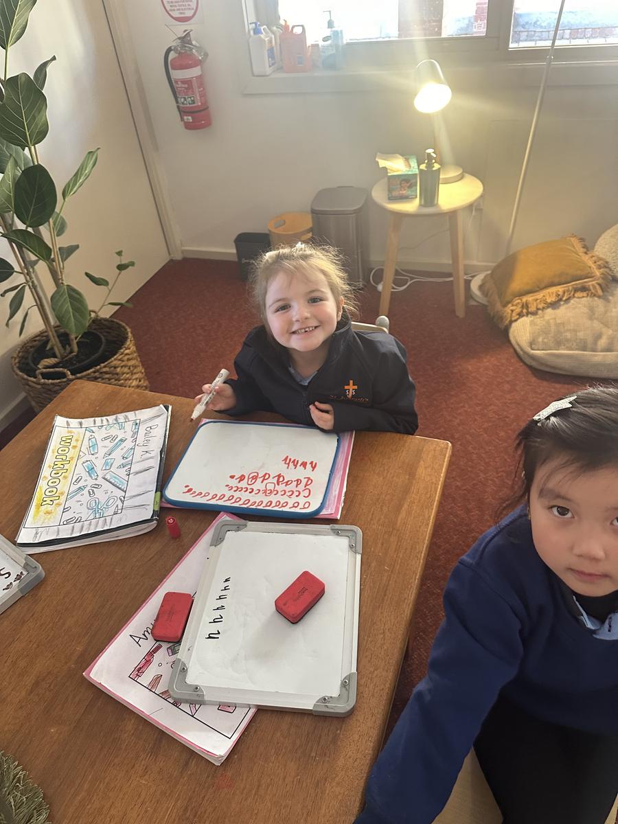 This fortnight, we have continued exploring new letter sounds and building on our sentence-writing skills. A strong focus has been placed on sentence structure, with students engaging in cut-and-paste activities that encourage problem solving as they work out the correct order of words. There has been a growing awareness of the importance of starting sentences with capital letters and ending them with full stops. We’ve also started sounding out words with four phonemes, such as skip, tent, and stop.