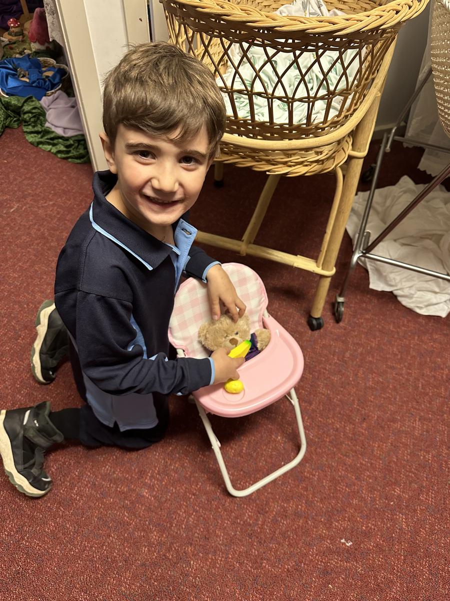 Our Foundation class has brought a truly special project to life, our very own classroom daycare program. What began as a simple idea has evolved into a vibrant and imaginative space complete with bottles, nappies, highchairs, baths and even two bassinets. The children have embraced real-life learning through their play experiencing the day-to-day responsibilities of running a daycare. Students enjoy ‘dropping off’ their baby before school and picking them up at the end of each school day. They have created a daycare rhythm which includes roll call, feeding times, changing and nap times. Through this rich play experience, they’ve learnt to take turns, share, build resilience and strengthen connections within our class and with students from other classrooms too.