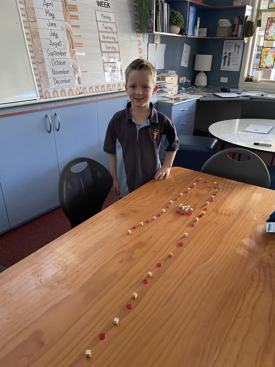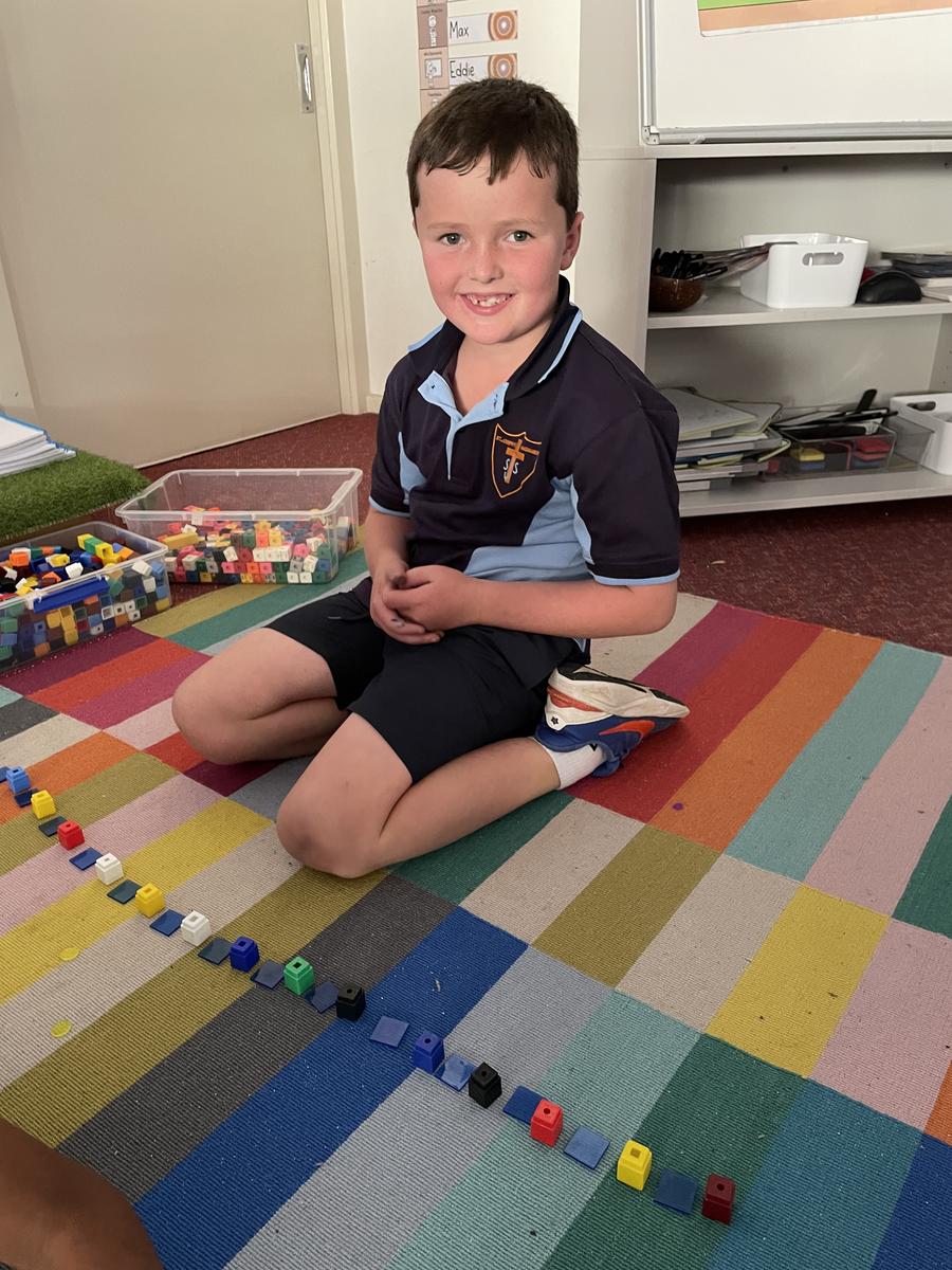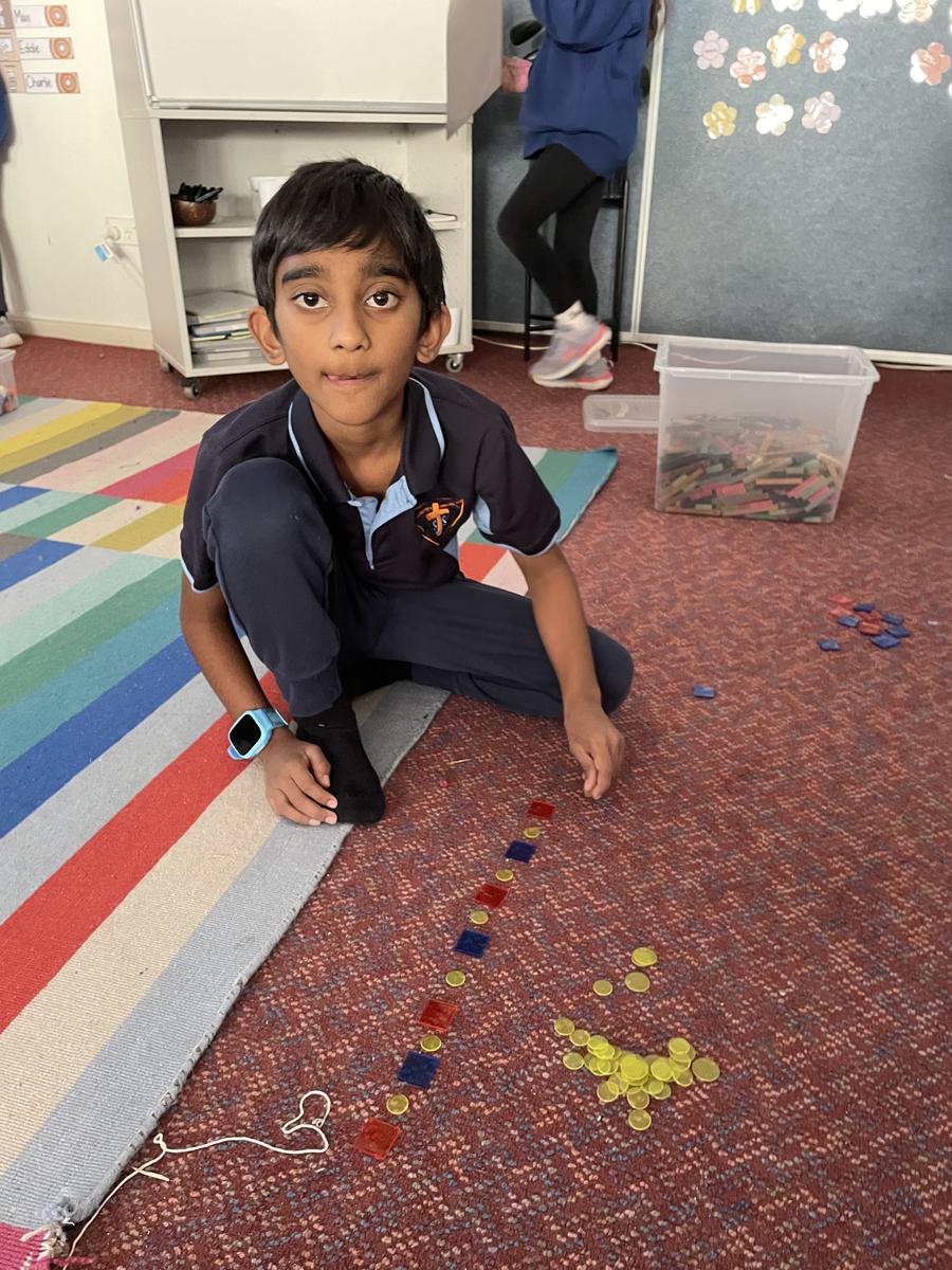 We have enjoyed looking at patterns this week in Maths. We have found lots of patterns around the classroom and school, as well as made our own patterns using materials from around the room such as Unifix blocks, counters, pencils, cushions and even chairs! The students have learnt about labelling patterns as AB, ABC or ABCD depending on how many elements of the pattern are repeated.