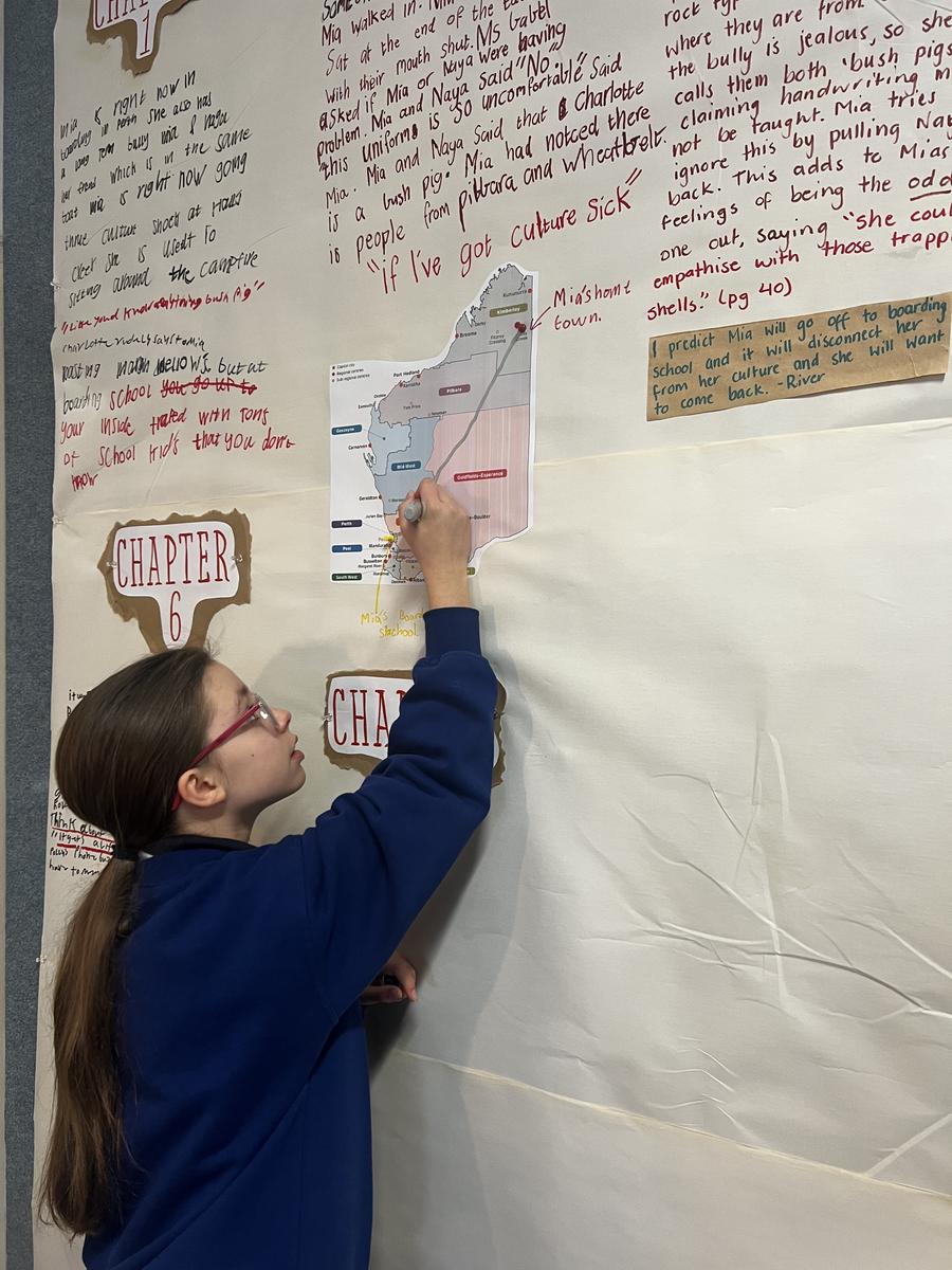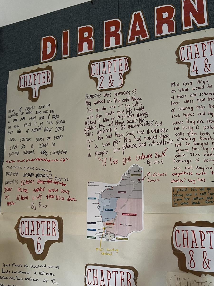 As part of our study of Dirrarn (meaning Black Cockatoo), each learner is writing a chapter summary. They are taking detailed notes, identifying key moments, and including quotes from main characters to support their ideas.