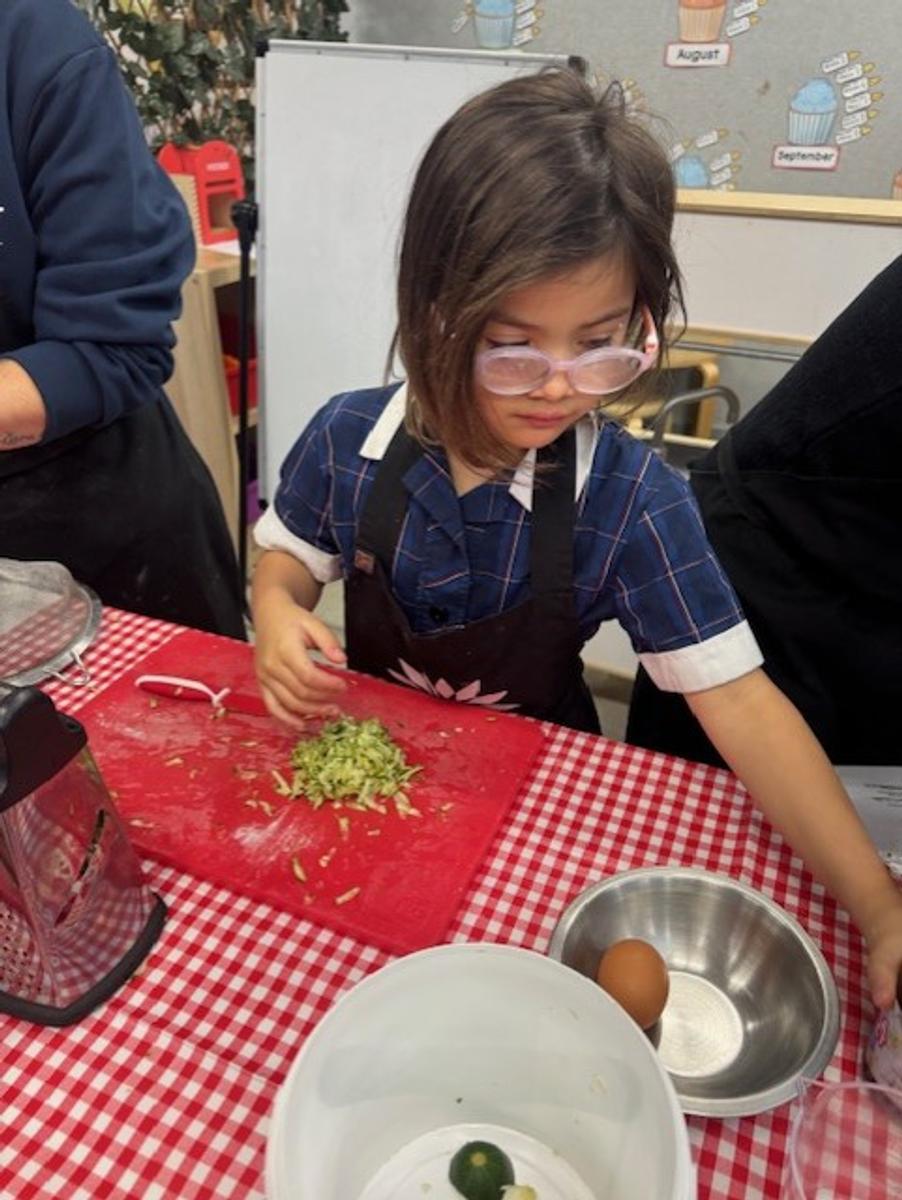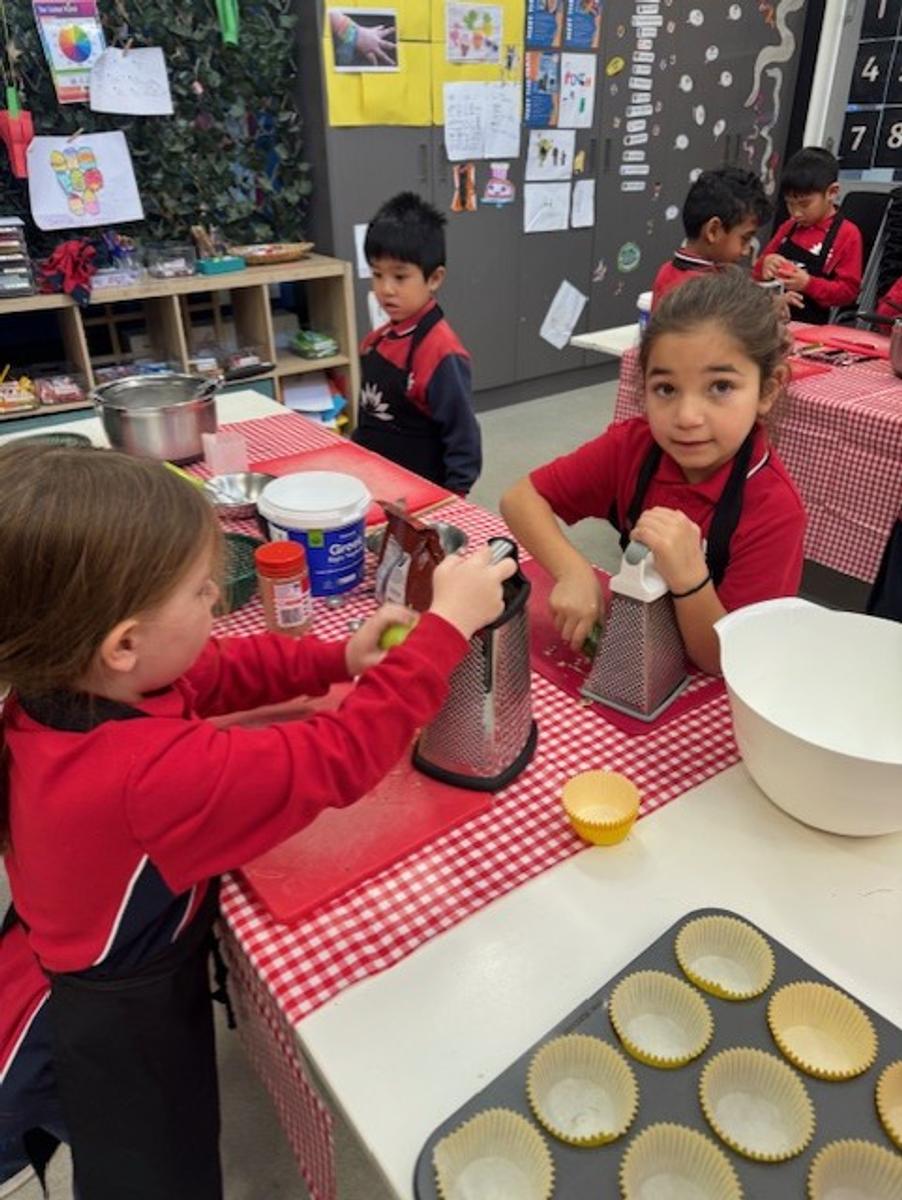 This week, we welcomed our littlest students to the kitchen, treating the Preps to their very own Kitchen/Garden experience where we prepared and shared pear and zucchini muffins. Under the watchful eyes of some wonderful parent helpers, the students used graters, cracked eggs, measured and mixed to create fluffy, veggie packed muffins.