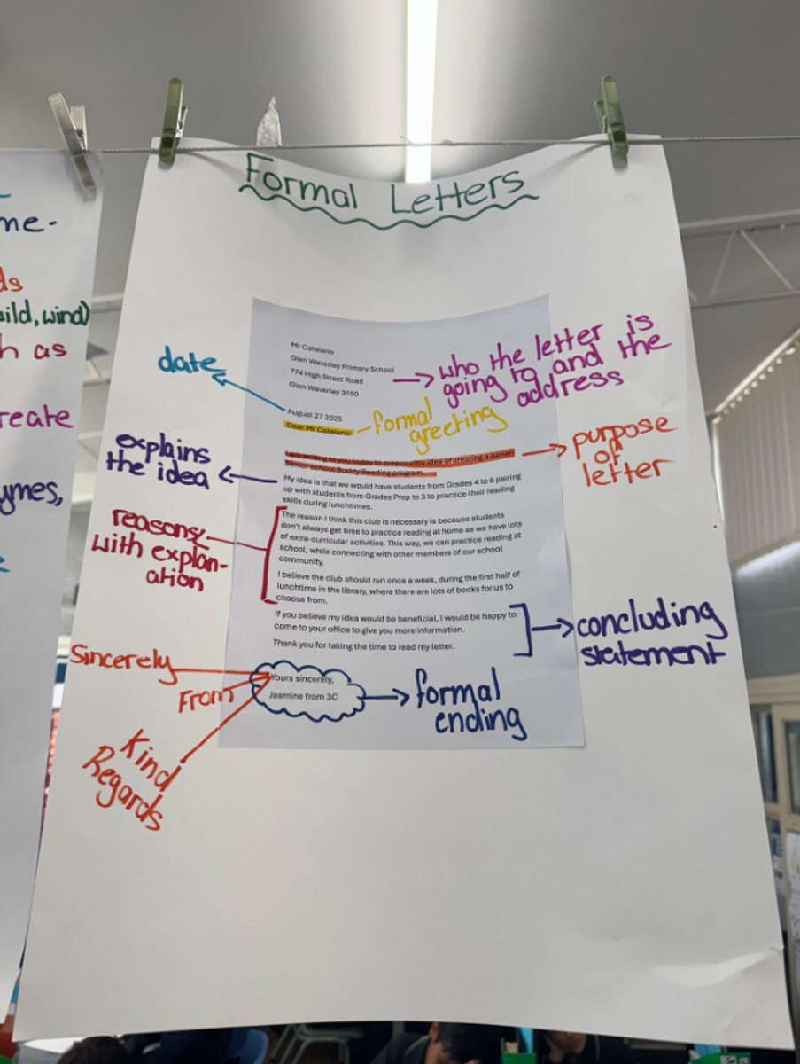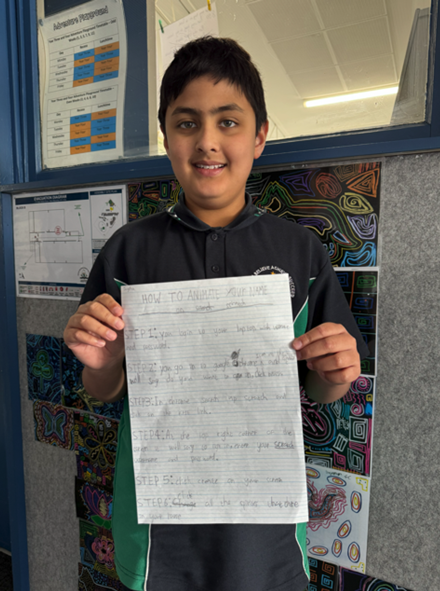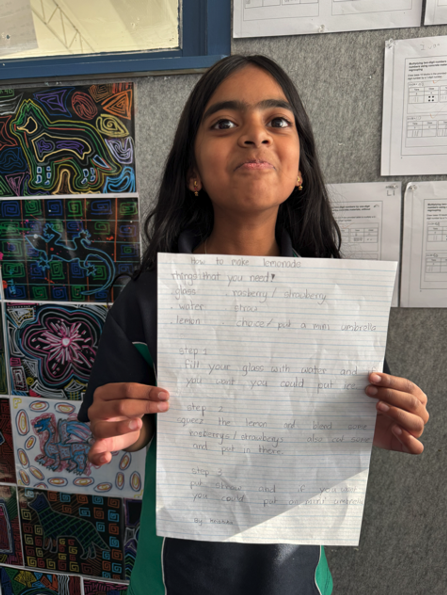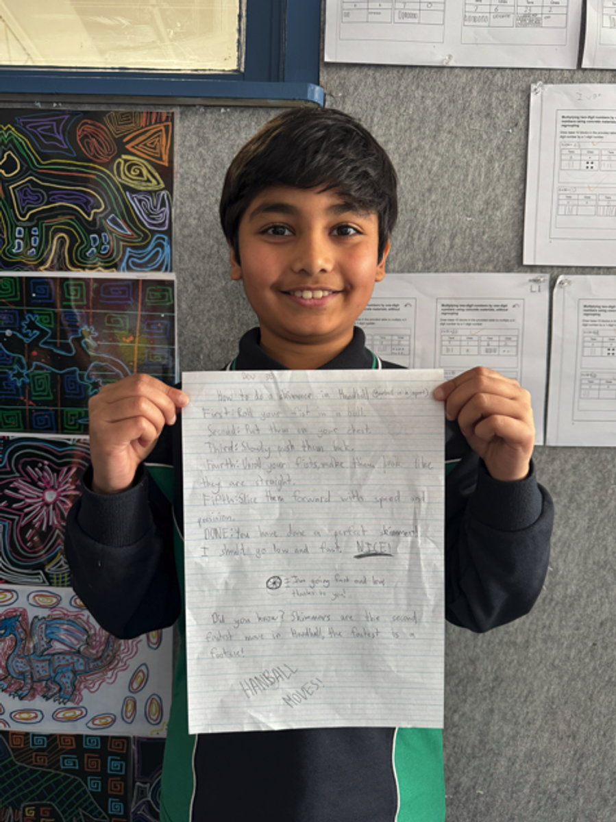 During the first half of Term Four, students will investigate and deepen their understanding of procedural texts. Students will be able to transfer the information discovered in Reading lessons regarding the purpose, audience and language of procedures, into their own texts. They will create different formats of procedures, whilst utilising their VOICES goal. Students will produce procedural texts that follow the correct structure, which will demonstrate their understanding that a procedure has a title, aim/purpose, materials and method. Students will expand on their knowledge of accurate and precise verbs and the importance of incorporating them into their writing so that the audience can accurately carry out each step.