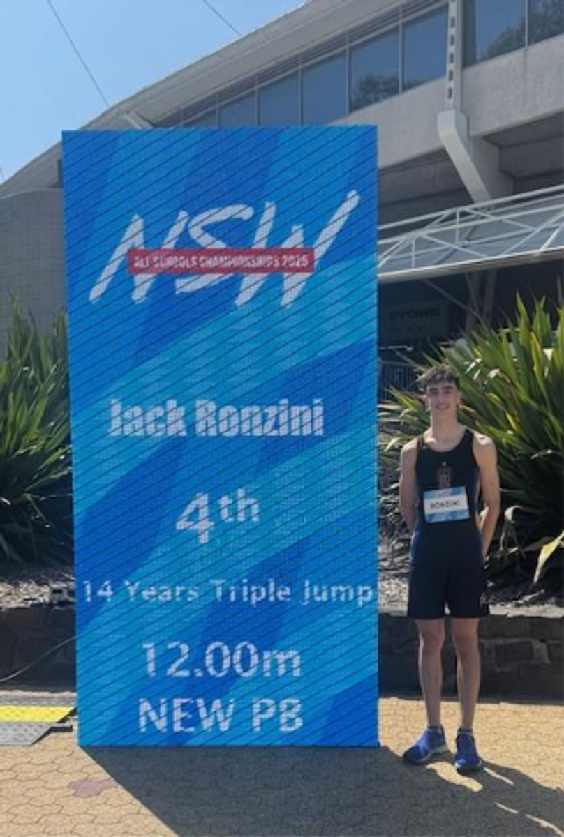 During the holidays we had three students representing the College at the NSW All Schools Athletics Championships, congratulations to Jack Ronzini, Christian Harada and Benjamin Proszenko for making it to this level. Special mention to Jack Ronzini who placed fourth in the Triple Jump where he set a PB and beat the SPC record by jumping 12.00m. Well done to all involved.