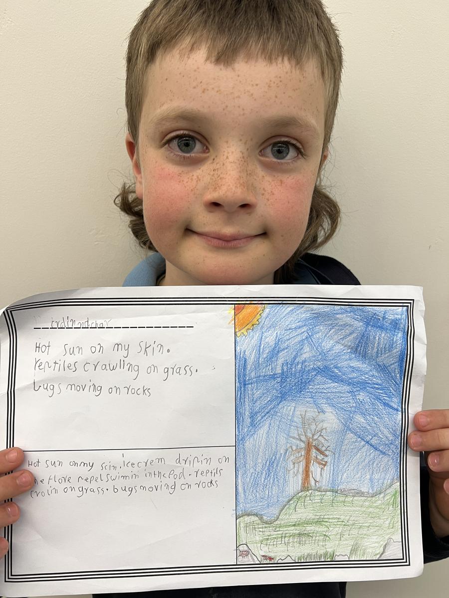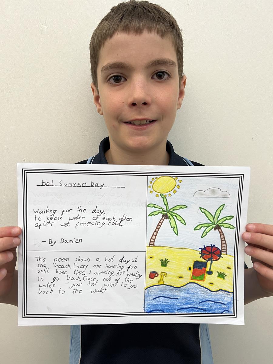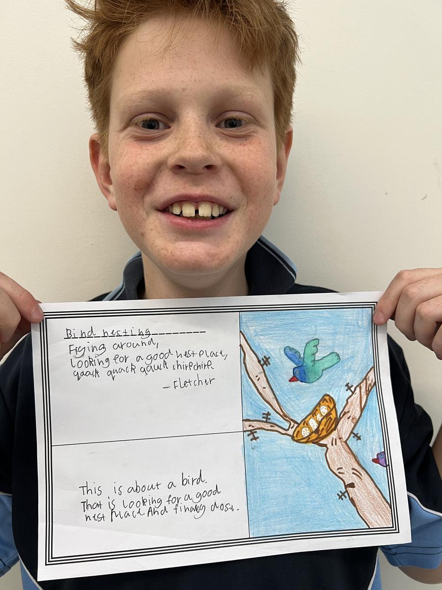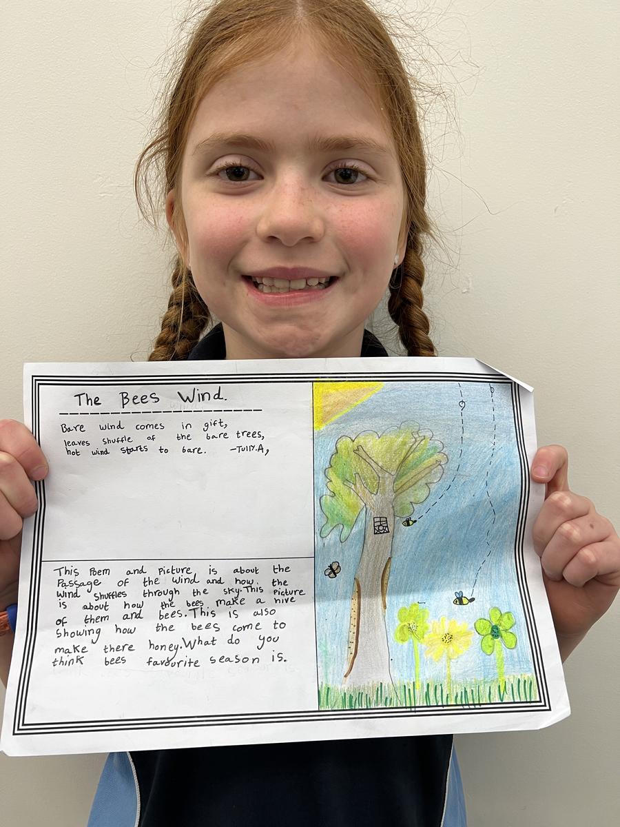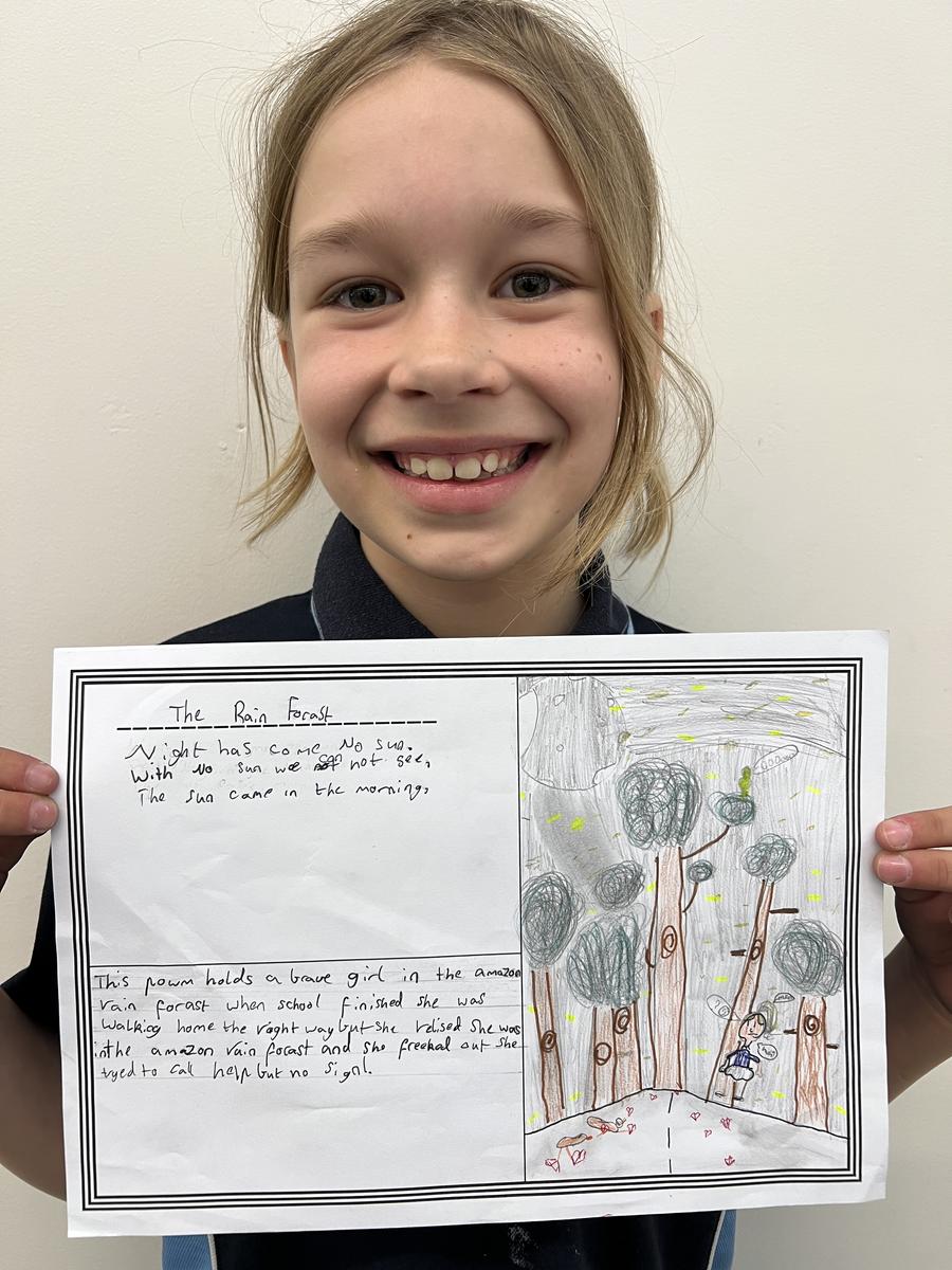 Over the past two weeks, the students in B4 and the 3/4 cohort, have been learning about haiku poems. They have shown great engagement, especially having the opportunity to sit outside when writing. They have used nature, weather and even the time of day to inspire their haiku writing. Students have also had great fun following the rules of a haiku, ensuring it follows the syllable pattern of 5-7-5. After writing many, they have published their favourite haiku. Please find some examples from B4 below: