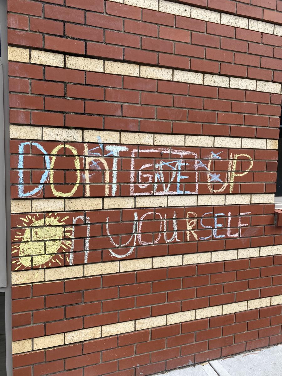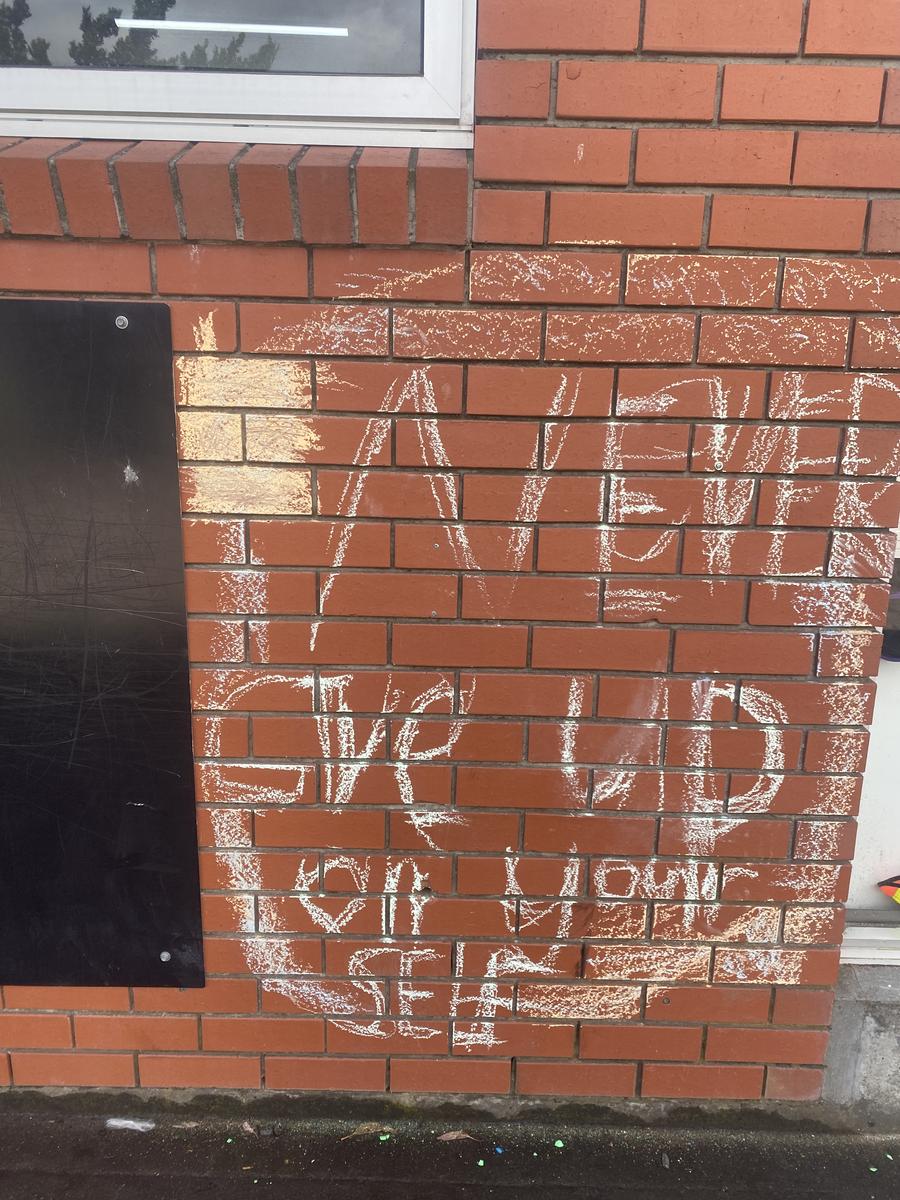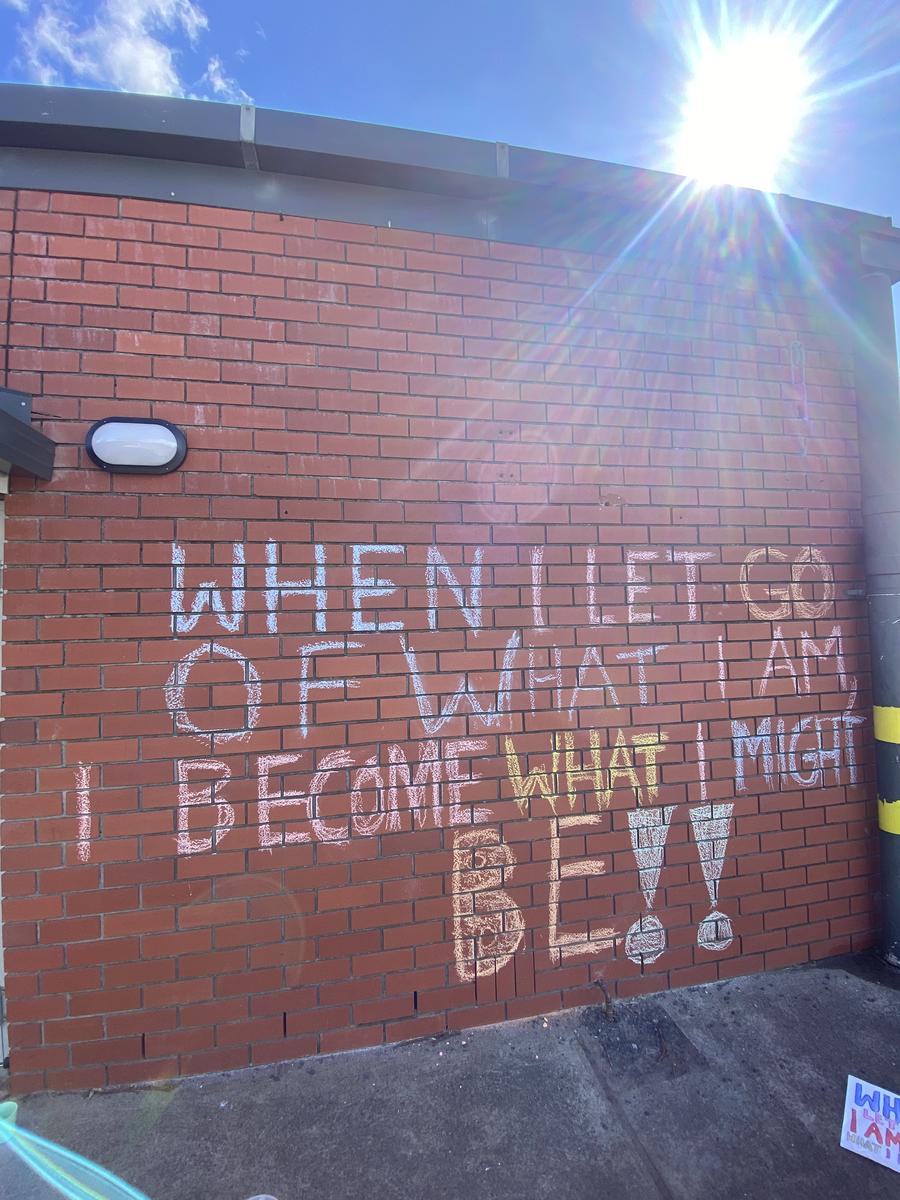 Students have been exploring precepts. Precepts are rules about important things, serving as a personal motto or guiding principle to help with decision-making and behaviour. Once students chose their precept, they had to create a colourful graffiti design. They created their artwork with chalk around the external school buildings. Here are some of our precepts we have chosen: