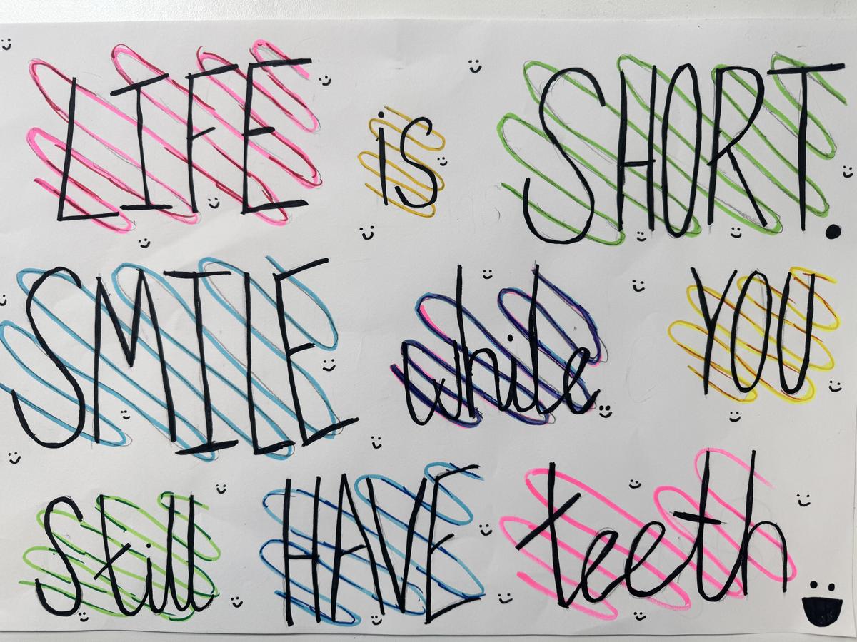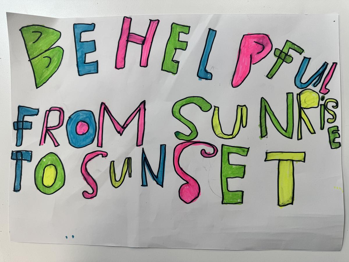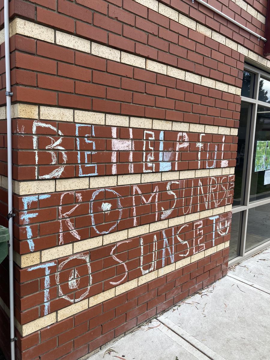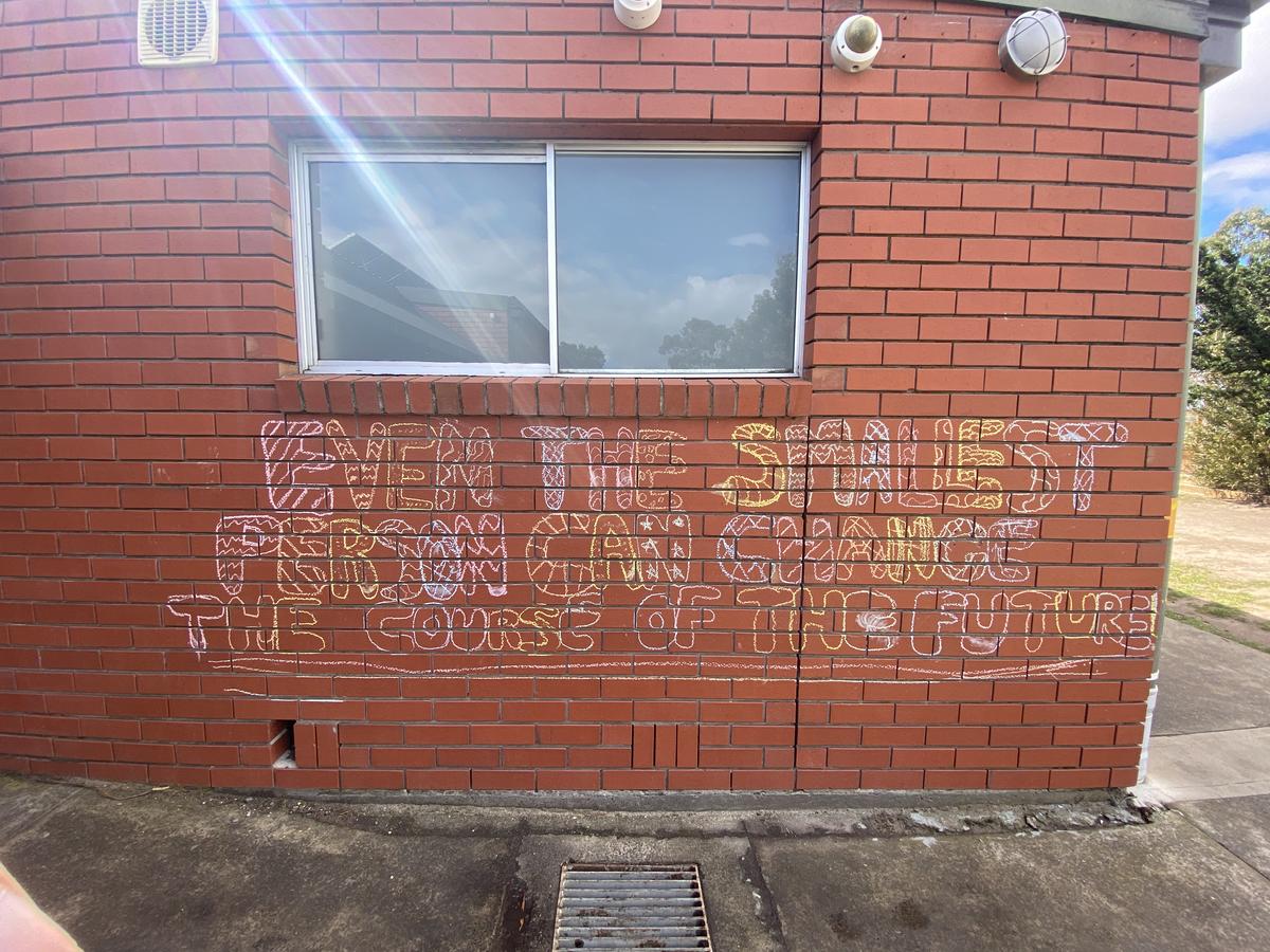 Students have been exploring precepts. Precepts are rules about important things, serving as a personal motto or guiding principle to help with decision-making and behaviour. Once students chose their precept, they had to create a colourful graffiti design. They created their artwork with chalk around the external school buildings. Here are some of our precepts we have chosen: