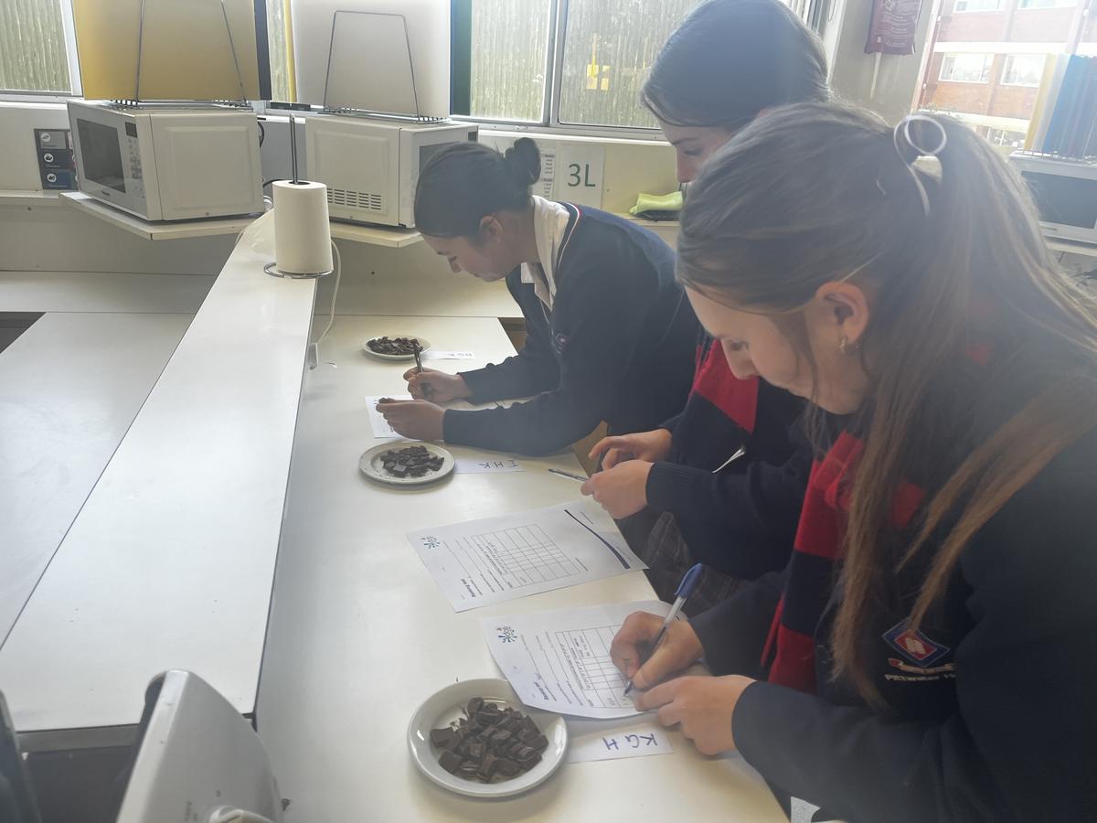 Last term, Mrs Seaton’s Year 9 Food Technology class participated in a hands-on experience, exploring how food product manufacturers conduct sensory testing with a specific target market. Students collated data on chocolate, chips and yoghurt to determine which brands teenagers prefer. The results were surprising because students expected brand loyalty to reflect taste, but in fact their favourite brands didn't necessarily rate the best when it came to taste.