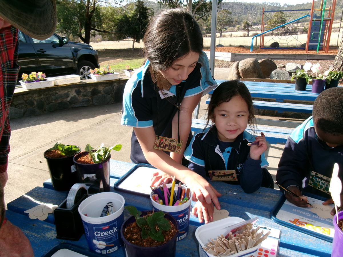 Over the past 2 weeks all classes from Prep to Grade 6 have been potting up small strawberry plants to give to their mums/special person for Mothers’ Day. All of these strawberry plants have been grown from runners from our larger strawberry plants growing in our school gardens. The children have done a great job planting these strawberry plants!