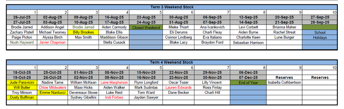 Weekend Stock Roster