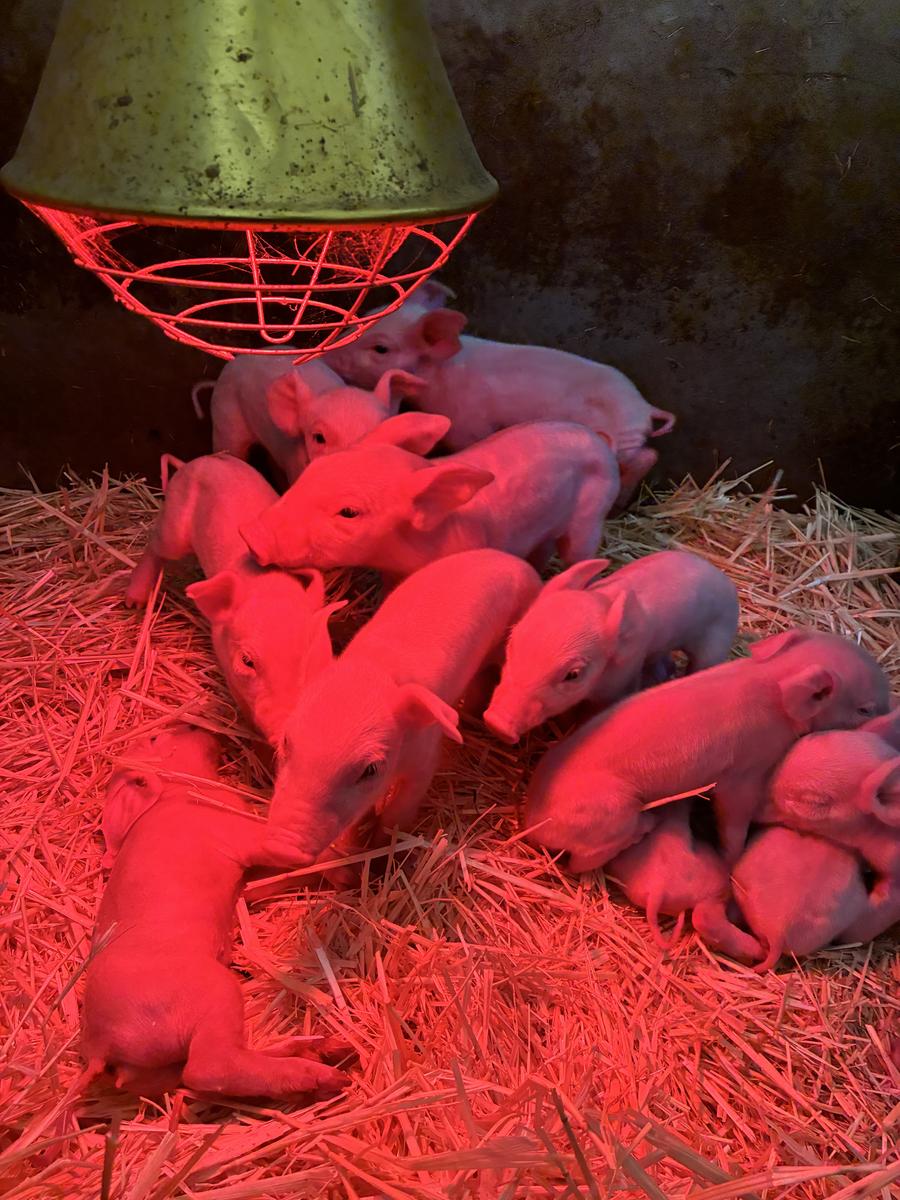 Last Sunday, we were excited to welcome 11 new piglets to the College farm! The sow was artificially inseminated and is being cared for in a farrowing crate to help protect the piglets. The piglets have already received their iron injections, had their tails and teeth clipped, and are kept warm and cosy under a heat lamp.