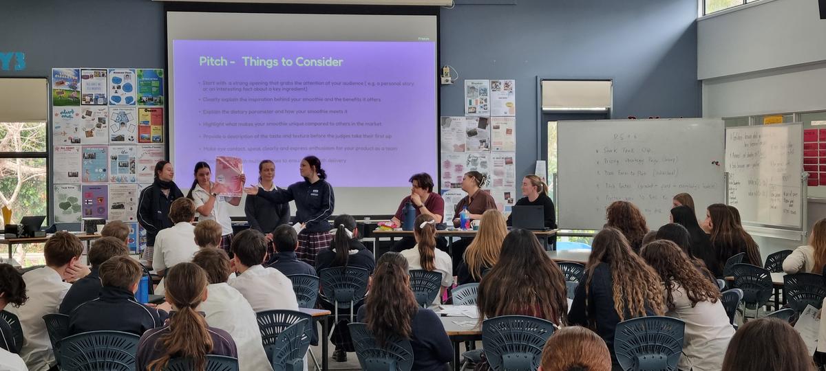 As a circuit breaker to the Term, all Year 9 students participated in our very popular Smoothie Week activities. In groups, students created their own “smoothie business,” designing unique recipes and selecting from a range of fruits. They could choose to make their smoothies dairy free, high protein, vegan, low GI, low sugar or even brain boosting. Once blended, students shared their creations with others to gather feedback and then worked together to prepare a pitch to advertise their smoothie to the class.