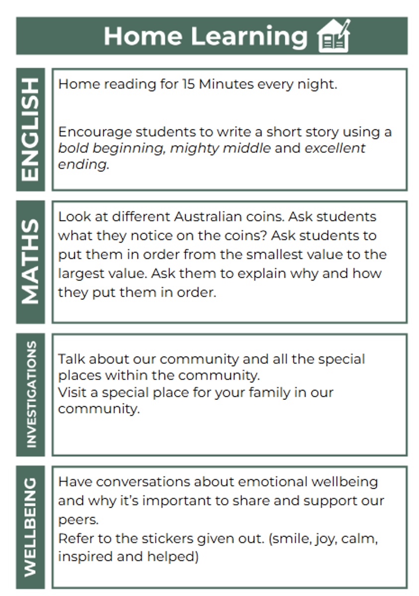 - Term 4 is a sun smart term. Please make sure students have their hats everyday in term 4.