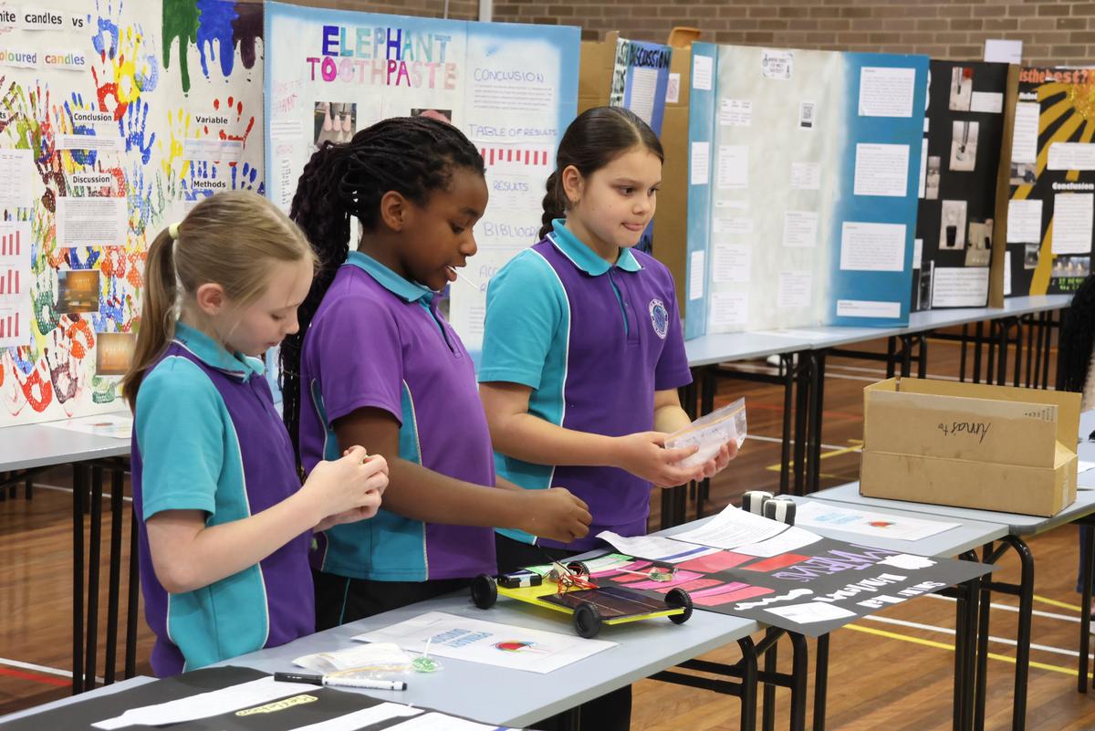 Students enthusiastically presented a diverse range of projects, including research poster boards, STEAM (Science, Technology, Engineering, Arts, and Mathematics) and STEM prototypes. These presentations created a vibrant collaborative learning environment, where students shared their findings with judges, peers, and carers. Among the standout projects were the Stage 2 students from Elderslie Public School proudly showcasing the solar cars they constructed. They explained their inquiry process, which involved learning about electrical circuitry and exploring factors influencing their cars’ movement—such as wheel size and solar panel placement.