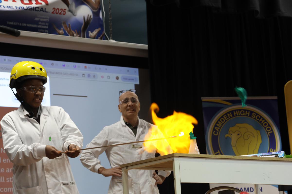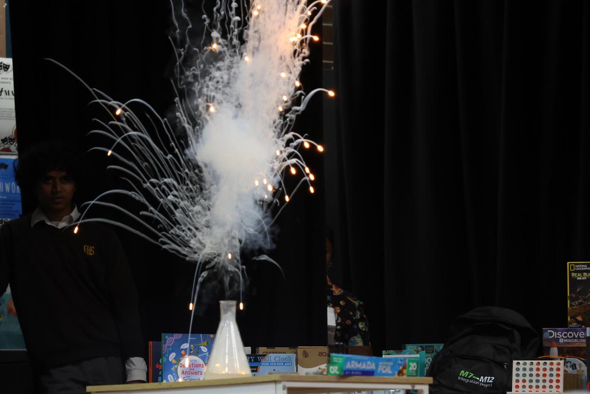 One of the most memorable moments of the evening was the presentation segment, which began with a bang! Attendees were mesmerised by a colourful and explosive chemistry display led by Mr Kairouz and his assistants, Rabi and Charlotte. From methane bubbles to dramatic reactions between sodium and water, and liquid nitrogen demonstrations, the chemistry show was a highlight that delighted everyone present.