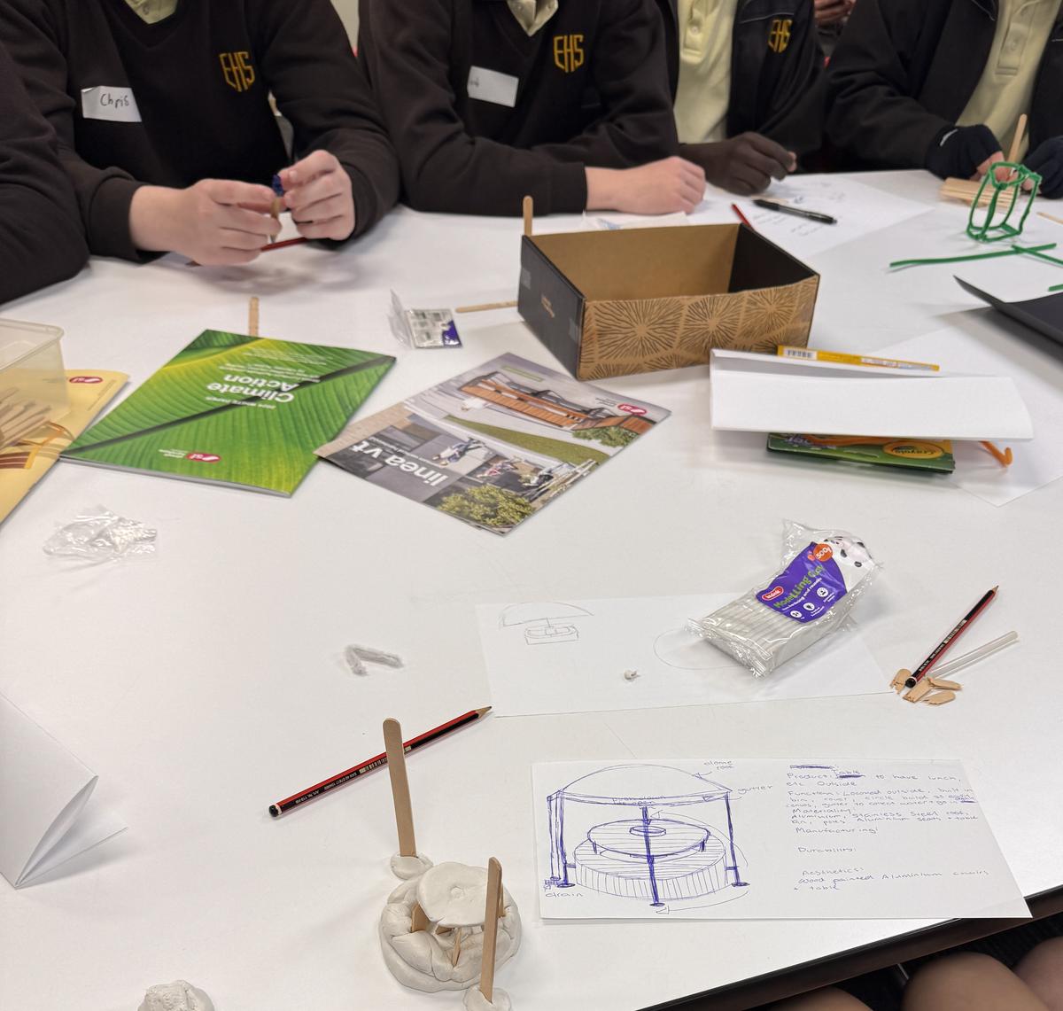 During the visit, students met an industrial design engineer who challenged them to think creatively and critically by redesigning outdoor areas within the school to address current problems with the outdoor space. This challenge encouraged students to apply their STEM knowledge to practical design solutions that could enhance their everyday environment.