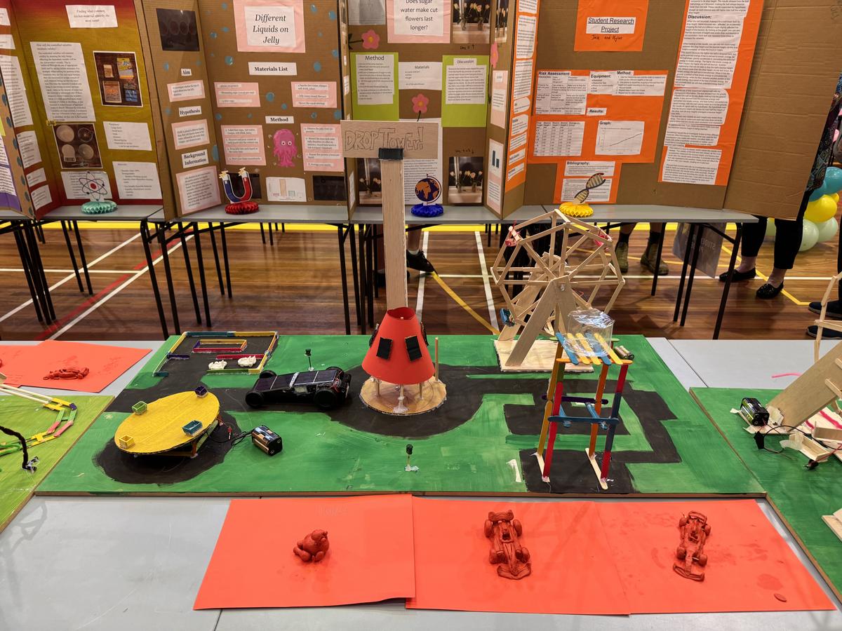 The STEM prototypes on display were just as impressive, featuring roller coasters and environmentally sustainable theme park rides. Several Year 7 students captivated attendees by communicating the plight of Threatened Species through powerful art and writing projects. The fair also featured interactive activities, including making sherbet to experience chemical reactions firsthand, and taste testing alternative food sources like mealworms, ant lollies, and cricket-based corn chips. Adding to the excitement was a dynamic drone display that fascinated visitors of all ages.