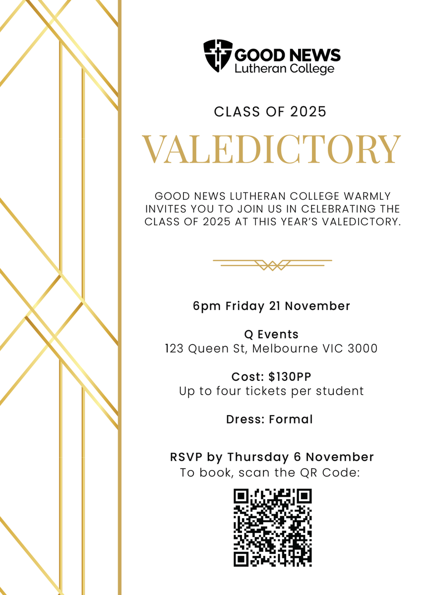 We are pleased to announce that bookings are now open for the 2025 Valedictory Dinner.
