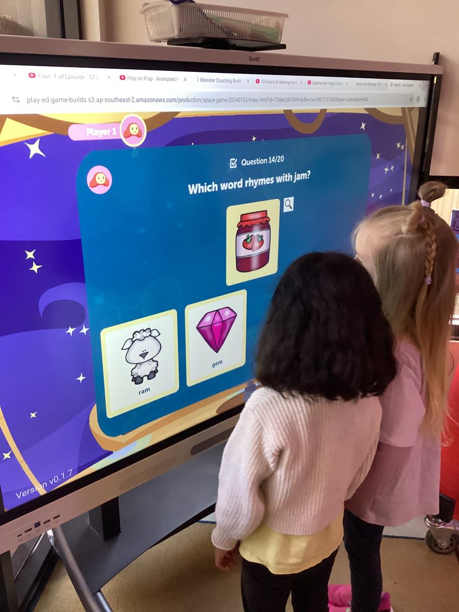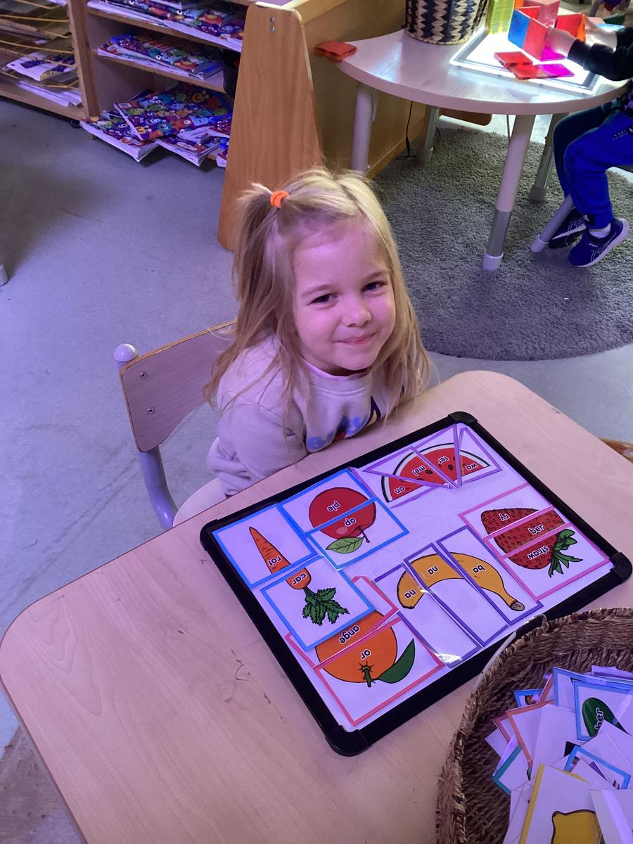 As a group we focused week by week on beginning sounds, middle sounds and final sounds of words. Combining this knowledge taught across the weeks the children were able to create words by making first, middle and end sounds (with three letter words). We used actions to support children in understanding this concept, where different actions represented different sounds: