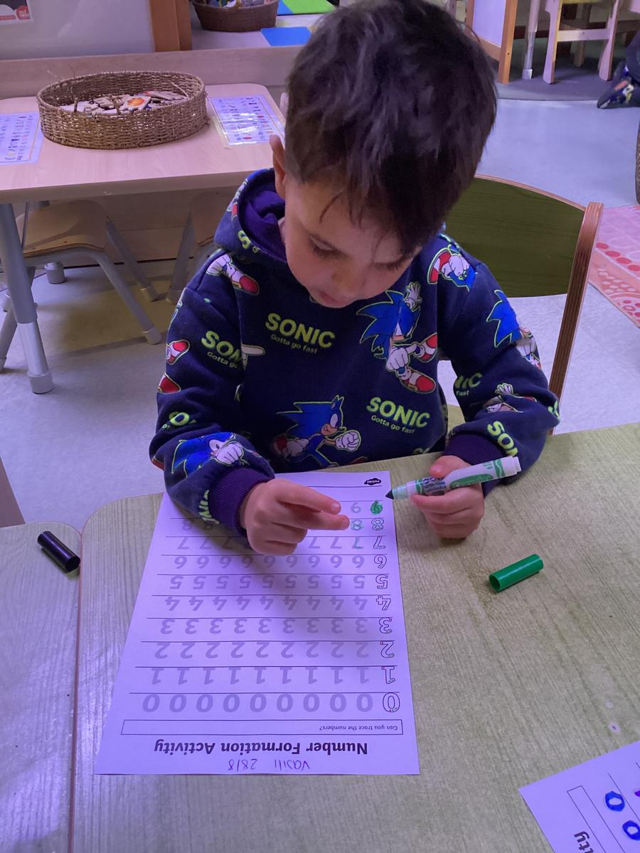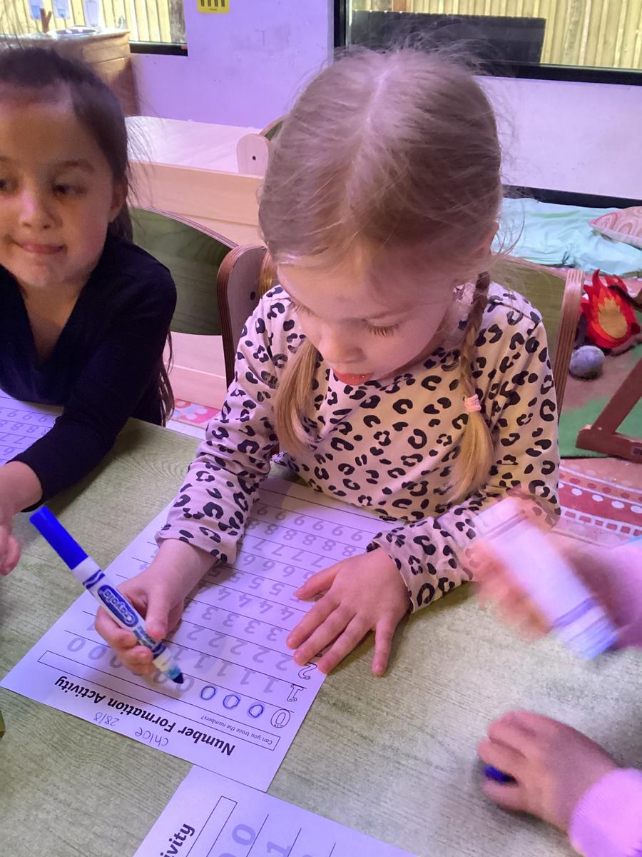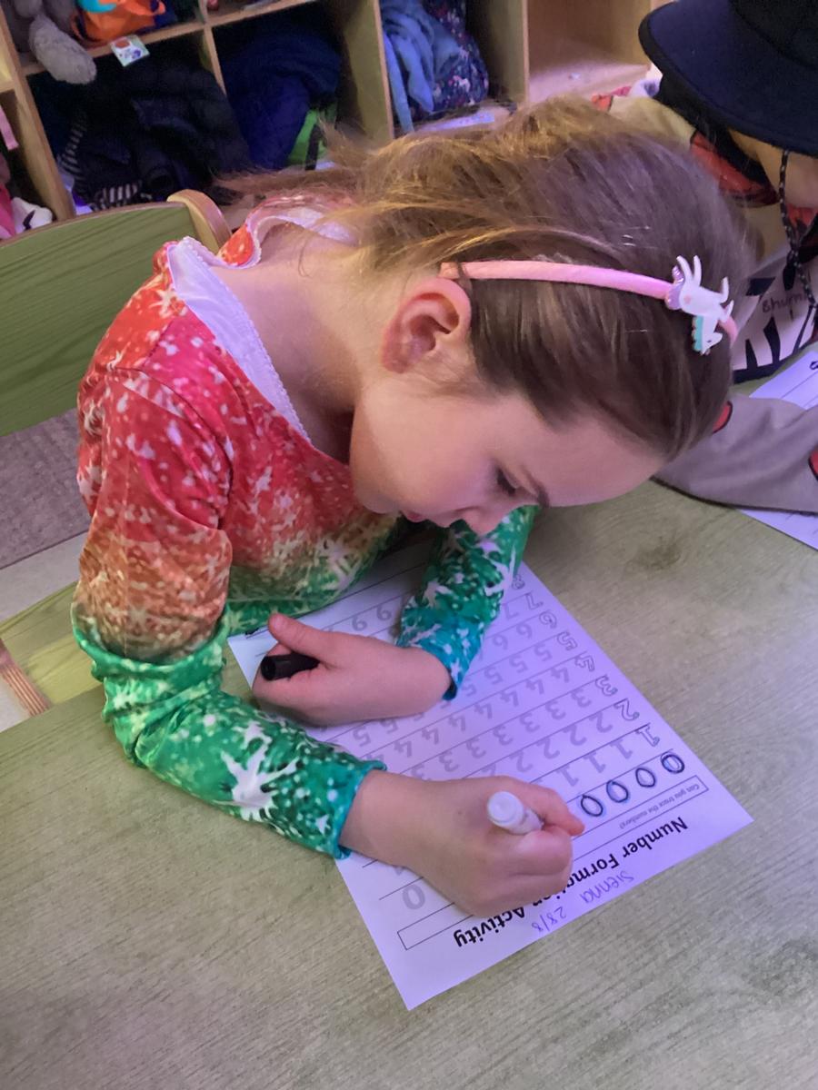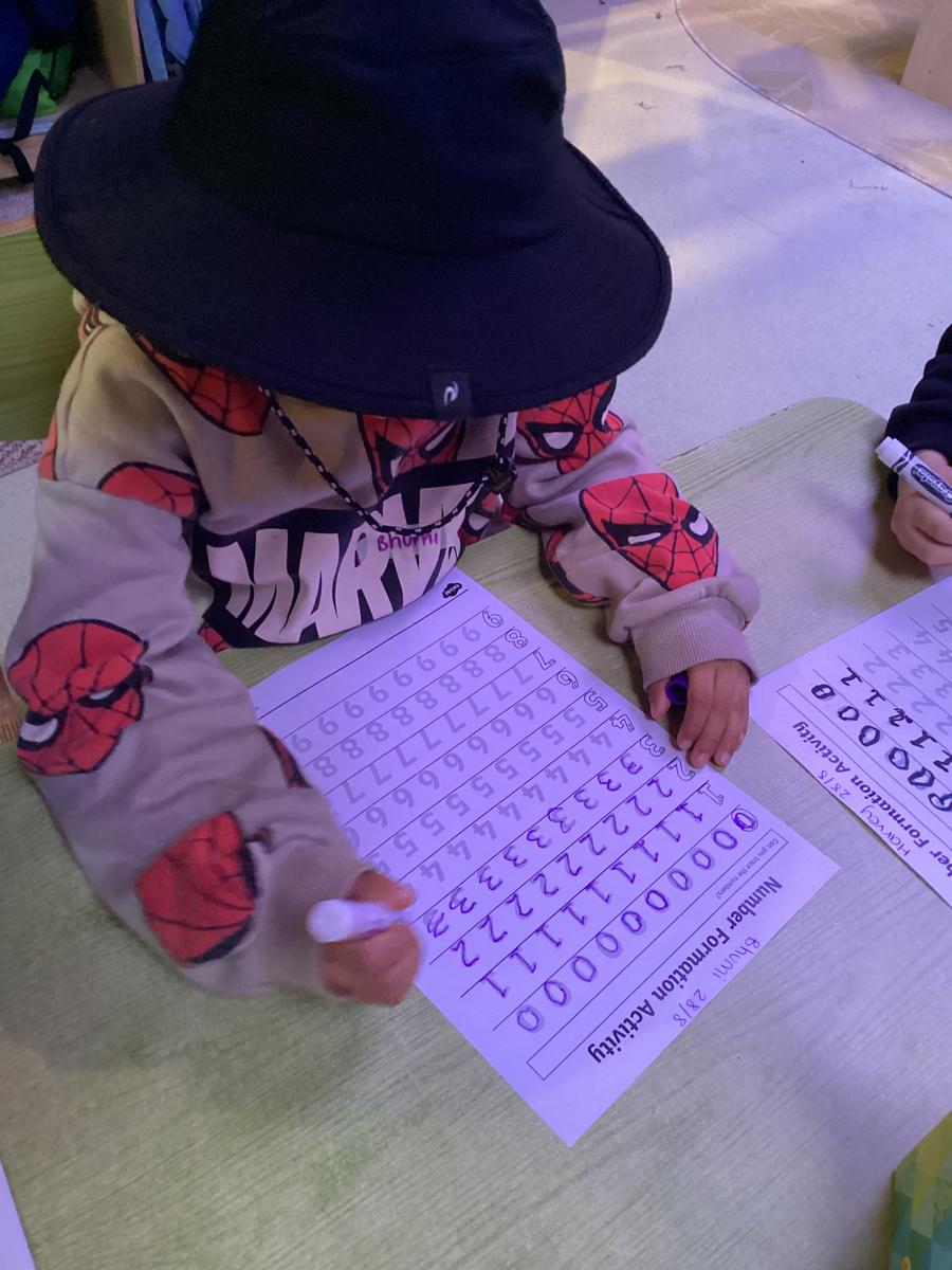 Within our numeracy program we focused on formation, in the air we practiced writing our numbers. To help us learn how to write and further identify them we sang songs that will assist us further, such as 3 = around the tree, around the tree, that’s how you write the number three.