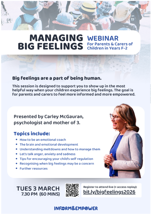 We have booked Carley McGauran once again to present this hour long webinar aimed at but not limited to parents of students in Years Prep - 2